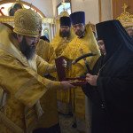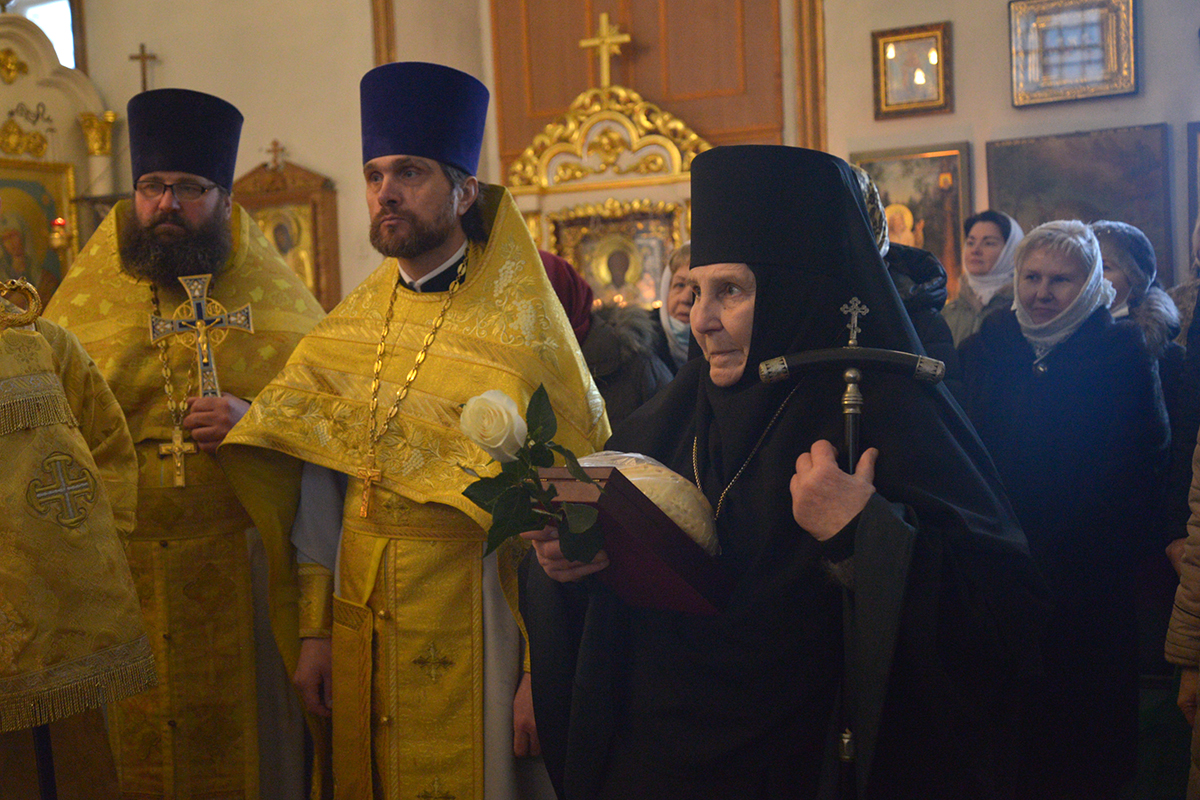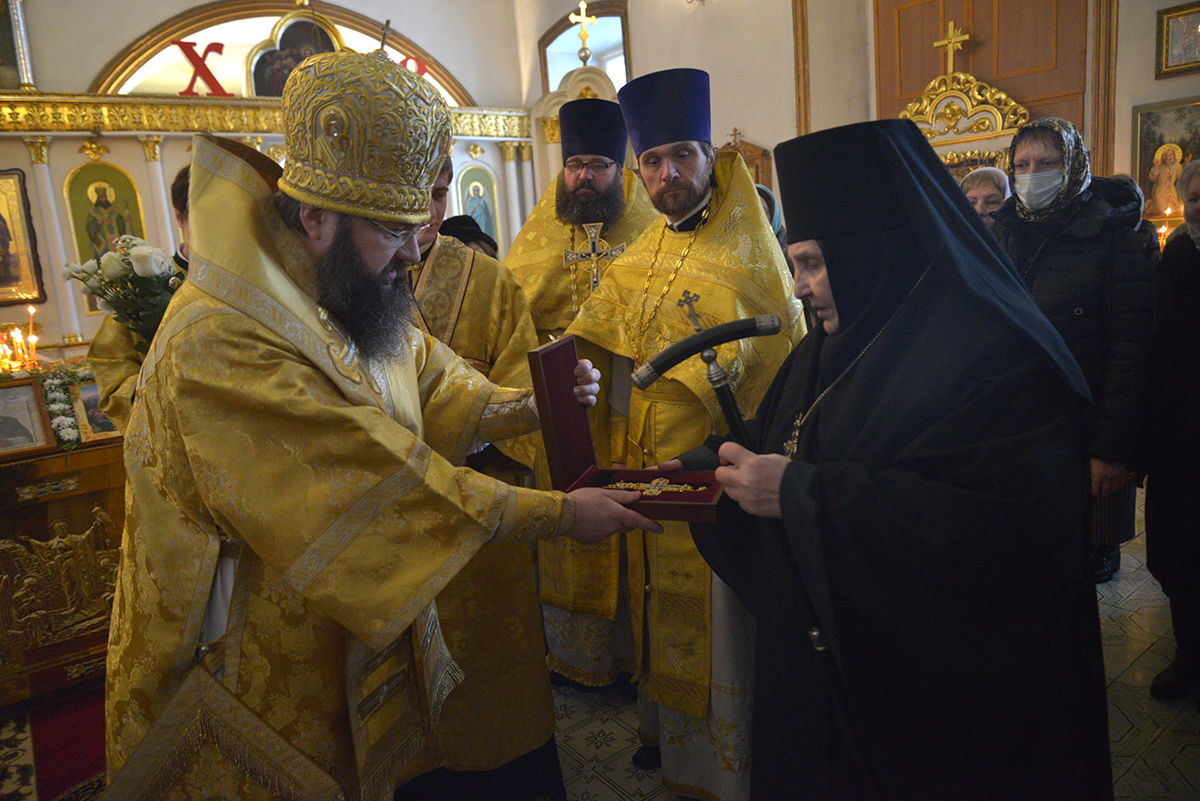 Высокопреосвященнейший Исидор поздравил игумению Николаю, иерея Георгия Амельченкова и всех прихожан с Престольным праздником. Поздравляя игумению Николаю с именинами, Владыка вручил ей в подарок наперсный крест и цветы.