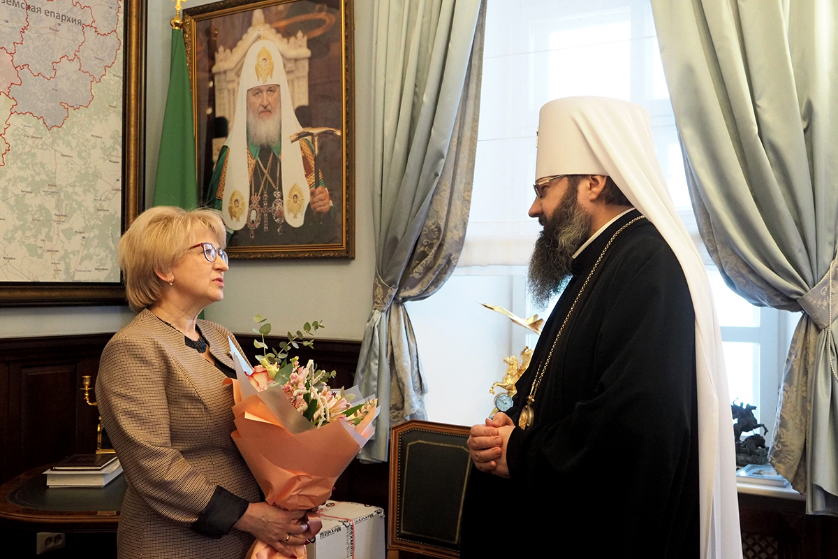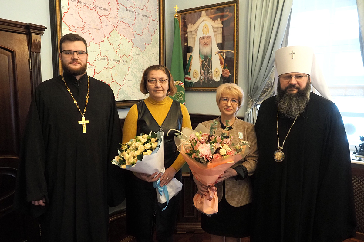 В ходе встречи митрополит Исидор поздравил Нину Леоновну Полторацкую с 60-летием со дня рождения. Во внимание к помощи Смоленской епархии Русской Православной Церкви, за значимый вклад в духовно-нравственное воспитание и просвещение подрастающего поколения Высокопреосвященнейший митрополит Исидор вручил Нине Леоновне медаль Смоленской епархии в честь чудотворной Смоленской иконы Божией Матери Одигитрии III степени.