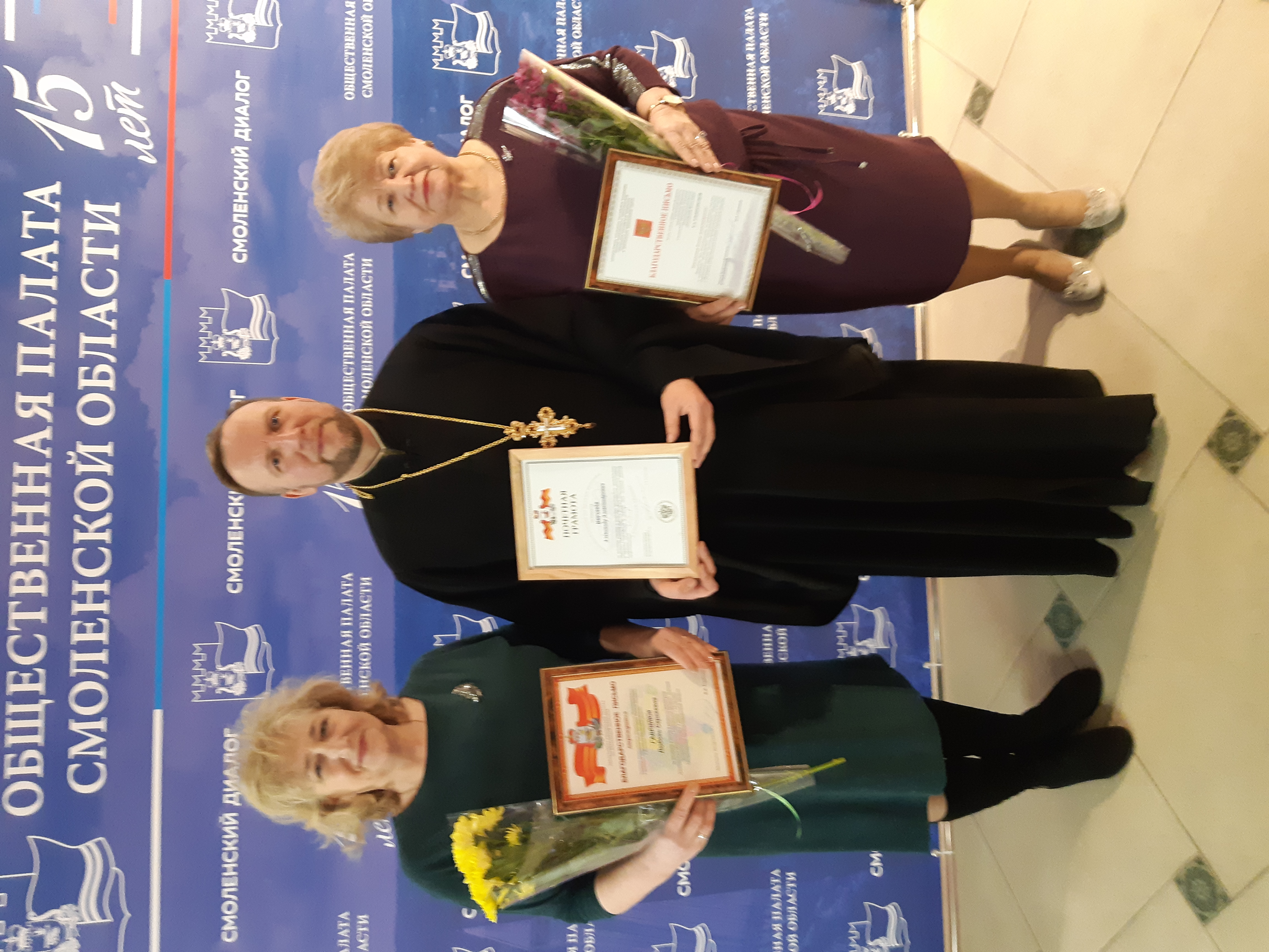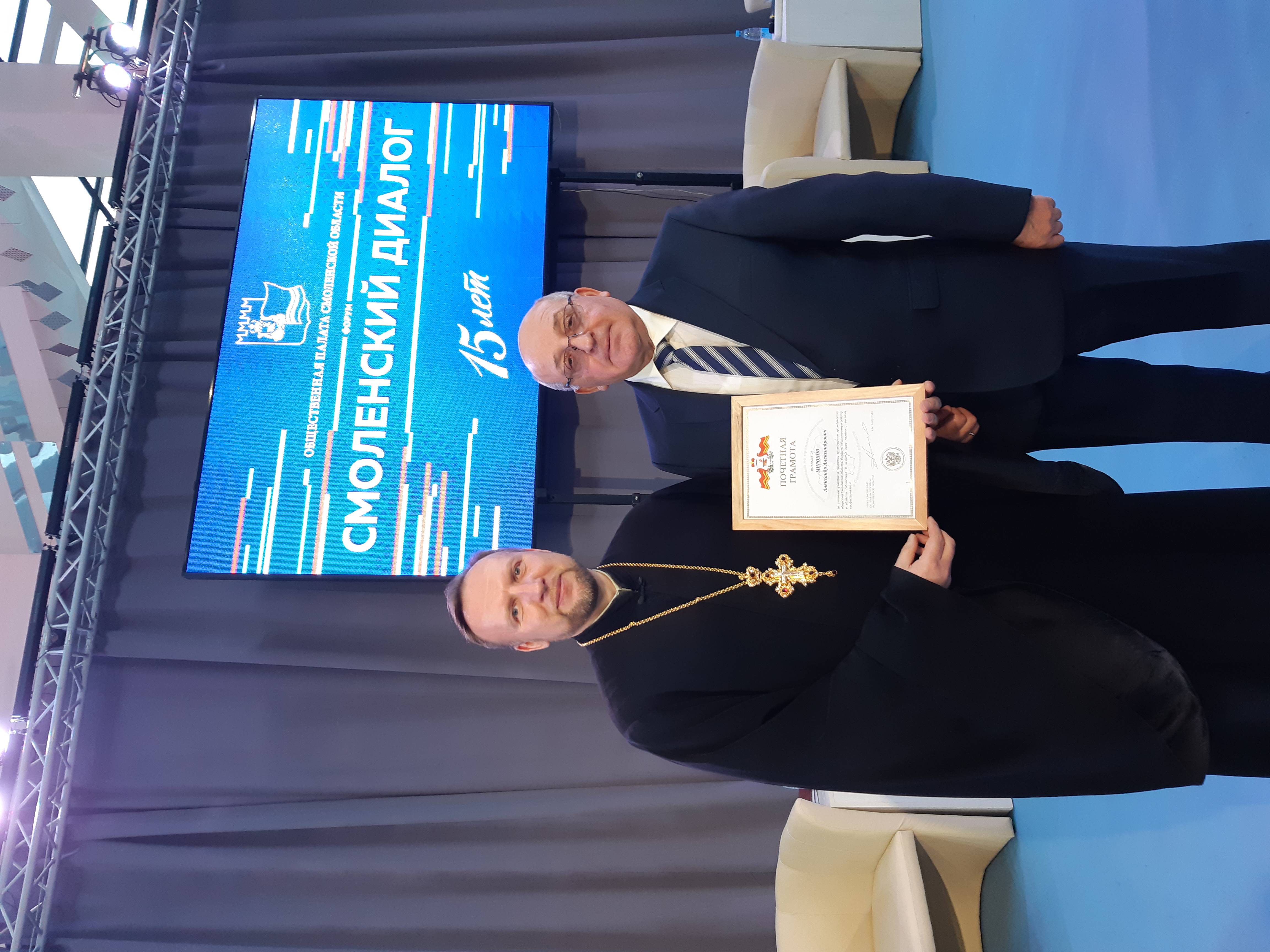 По окончании приветственных слов прошло награждение членов Общественной палаты. Почетная Грамота за активное участие в развитии институтов гражданского общества Смоленской области, большую общественную работу в области соблюдения и защиты прав человека была вручена члену Общественной палаты, благочинному Демидовского округа протоиерею Александру Миронову Уполномоченным по правам человека в Смоленской области А.М. Капустиным. Далее собравшиеся выслушали докладчиков и приняли участие в дискуссии.