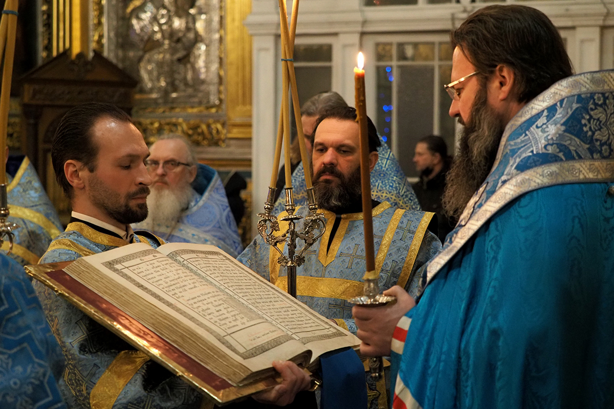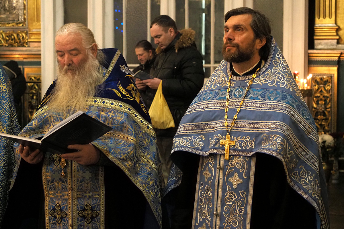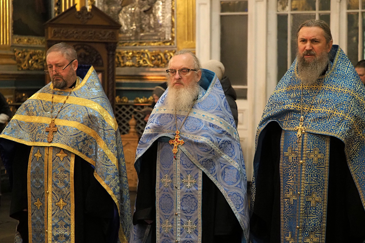 За вечерним богослужением собрались прихожане кафедрального храма, чтобы с архипастырем и духовенством вознести молитвы Пресвятой Владычице нашей Богородице, испросить помощи и заступления.