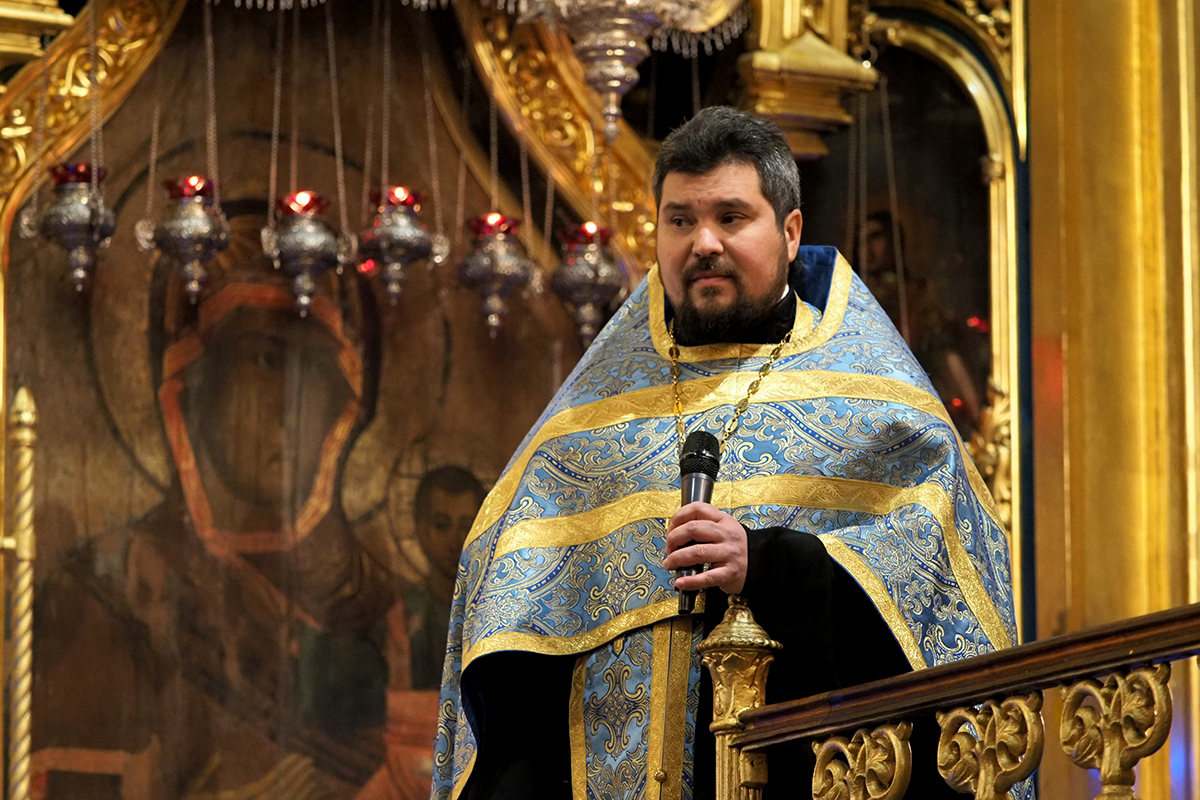 После акафистного чтения, настоятель храма великомученика и победоносца Георгия с. Пригорское протоиерей Роман Павлишов обратился к пастве со словами проповеди.
