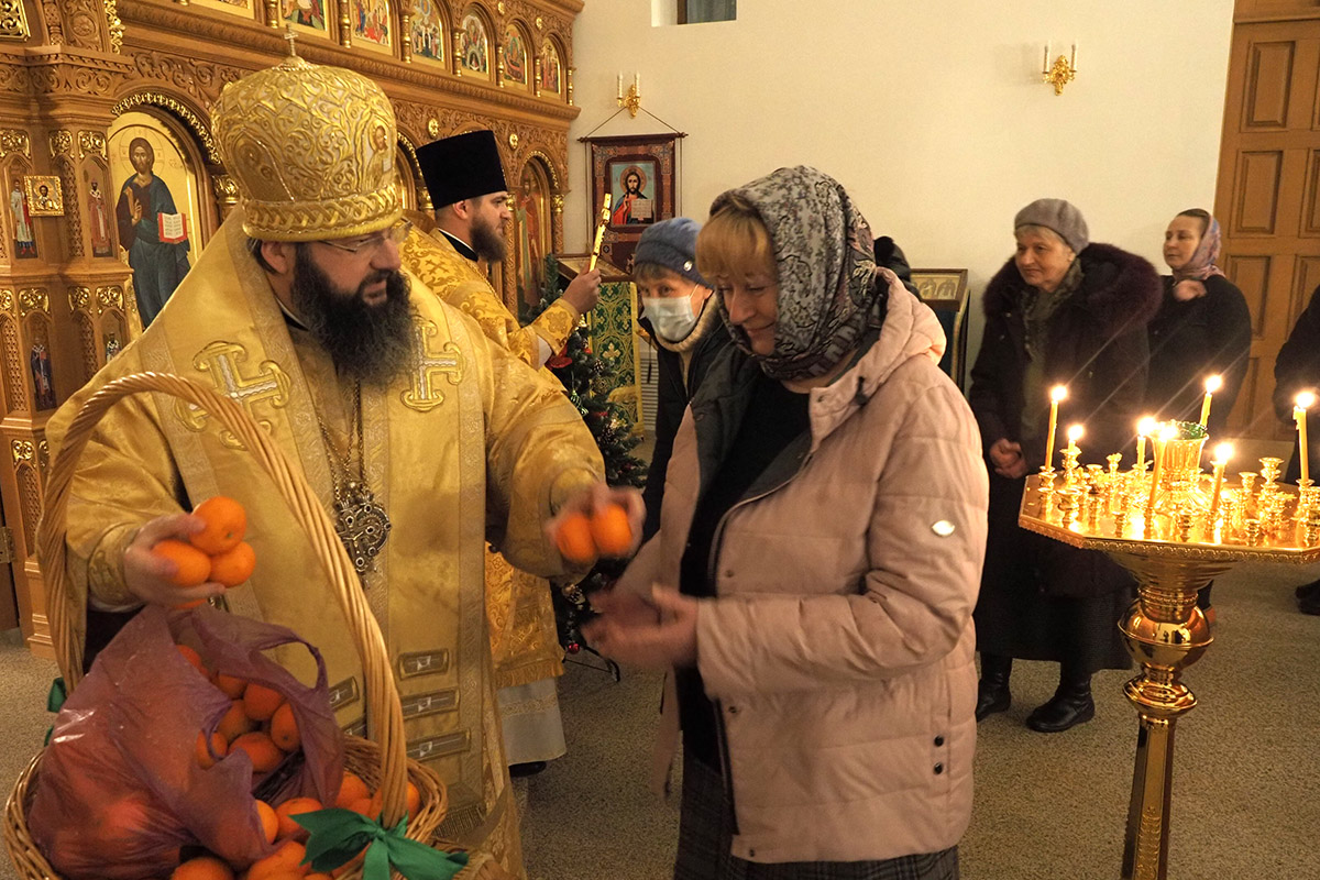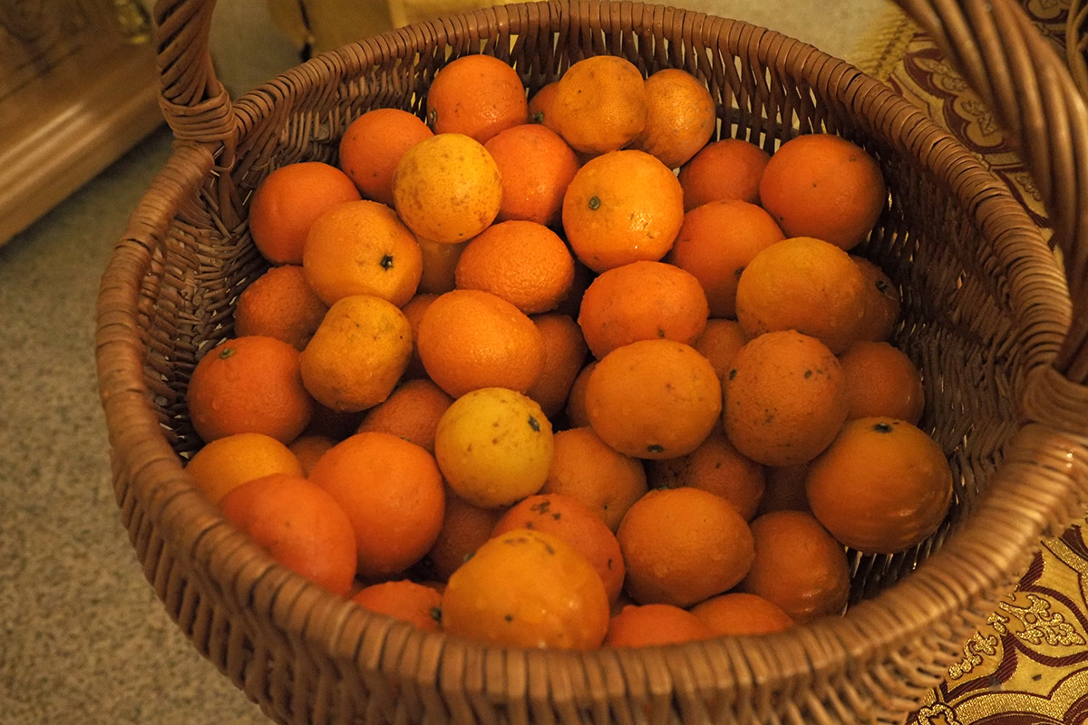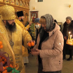В конце богослужения, подходя к Кресту, каждый участник литургии получил освященные мандарины.