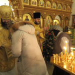 По окончании Литургии митрополит Исидор выразил благодарность настоятелю храма иерею Льву Гарину, а также всем мирянам за совместную молитву в эту Новогоднюю ночь: