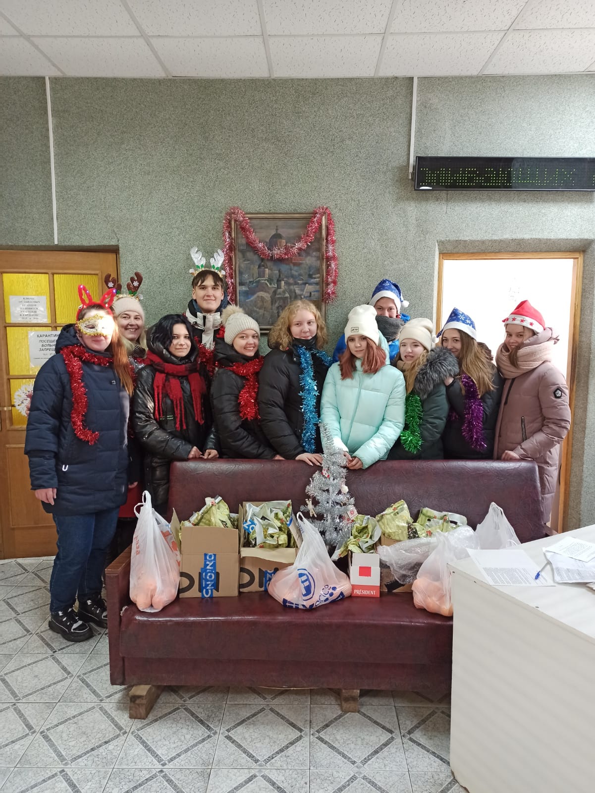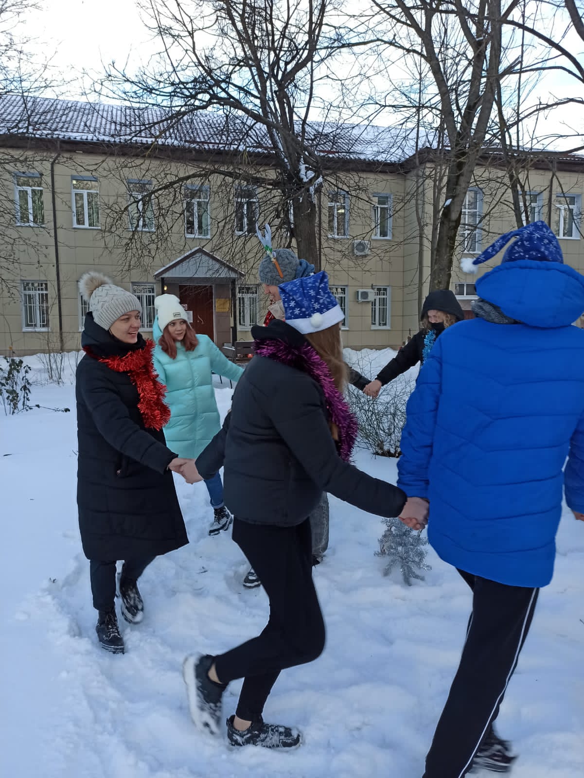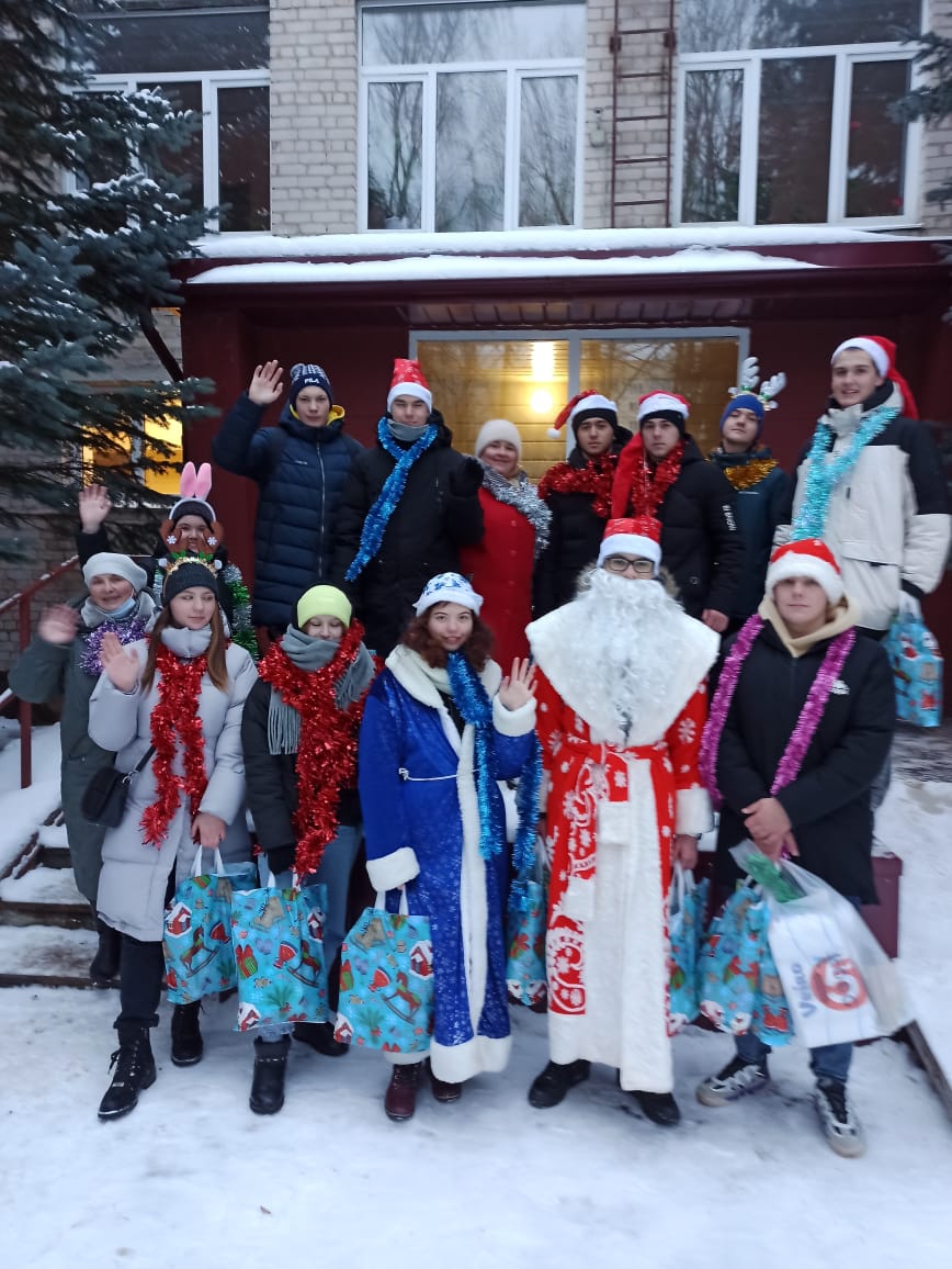 Волонтеры посетили отделение «хоспис» ОГБУЗ «Смоленский областной онкологический клинический диспансер». Водили хороводы, нарядили во дворе маленькую искусственную ёлку, которая потом была доставлена в одну из палат. В качестве подарков передали мандарины, пряники ручной работы, бытовую химию.