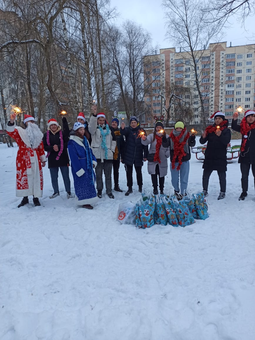 Добровольцы службы – ученики СШ №29 г. Смоленска, студенты ОГБПОУ «Смоленский техникум железнодорожного транспорта, связи и сервиса», ФГБОУ ВО «РЭУ им. Г.В. Плеханова» — собрали и передали сладкие подарки и канцелярские принадлежности для детей, которые проходят лечение в отделении «Ласточка» ОГБУЗ «Смоленский областной психоневрологический клинический диспансер». В связи с неблагоприятной эпидемиологической ситуацией, все учреждения закрыты для посещения, но добровольцы нашли оригинальный выход и устроили бесконтактный праздник на улице. Водили хоровод под окнами учреждения, зажигали бенгальские огни, пели песни. Маленькие пациенты радостно наблюдали за праздничным действием из окон.