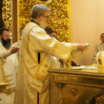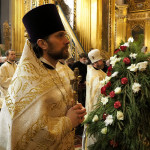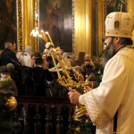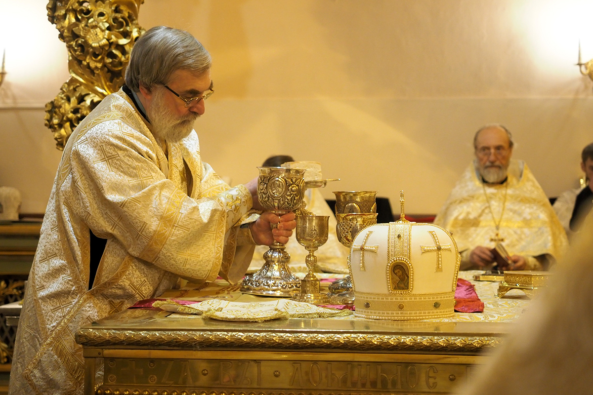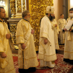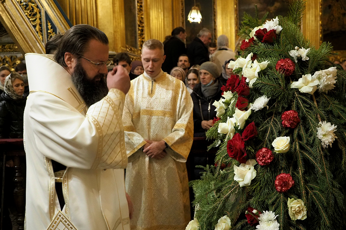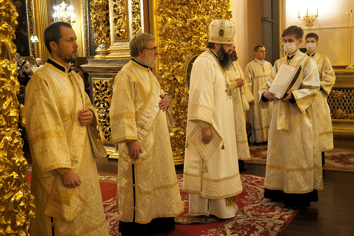 Богослужение совершил митрополит Смоленский и Дорогобужский Исидор. Его Высокопреосвященству сослужили секретарь Управления Смоленской епархии, настоятель кафедрального собора иерей Владислав Баган, духовенство собора.
