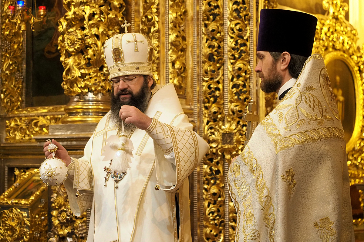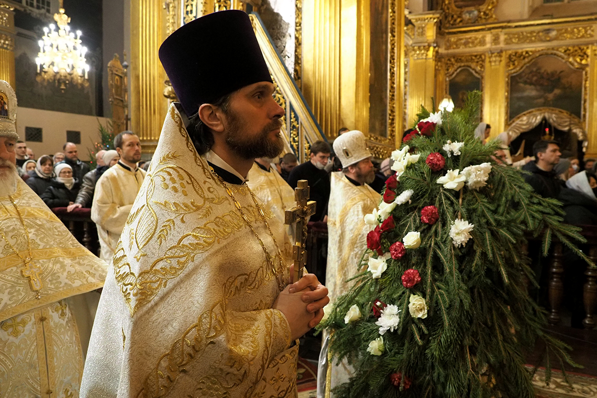 Во время Божественной литургии протоиерей Григорий Трубин зачитал Рождественское послание клиру, монашествующим и мирянам Святейшего Патриарха Московского и всея Руси Кирилла.