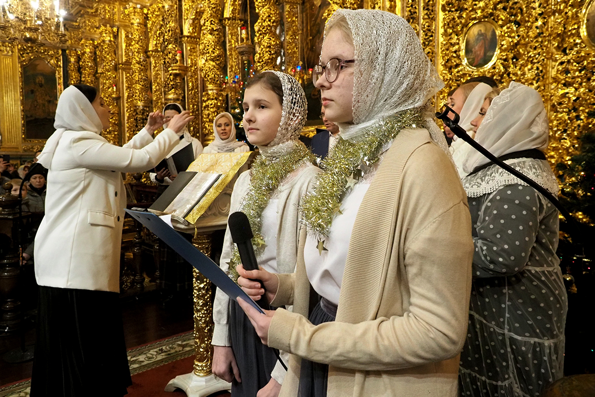 После Литургии, по традиции, в исполнении Архиерейского хора прозвучал праздничный концерт – певчие исполнили рождественские песнопения и колядки. В концерте участвовали клирики собора протоиерей Григорий Трубин и протоиерей Александр Мельничук.