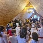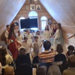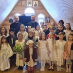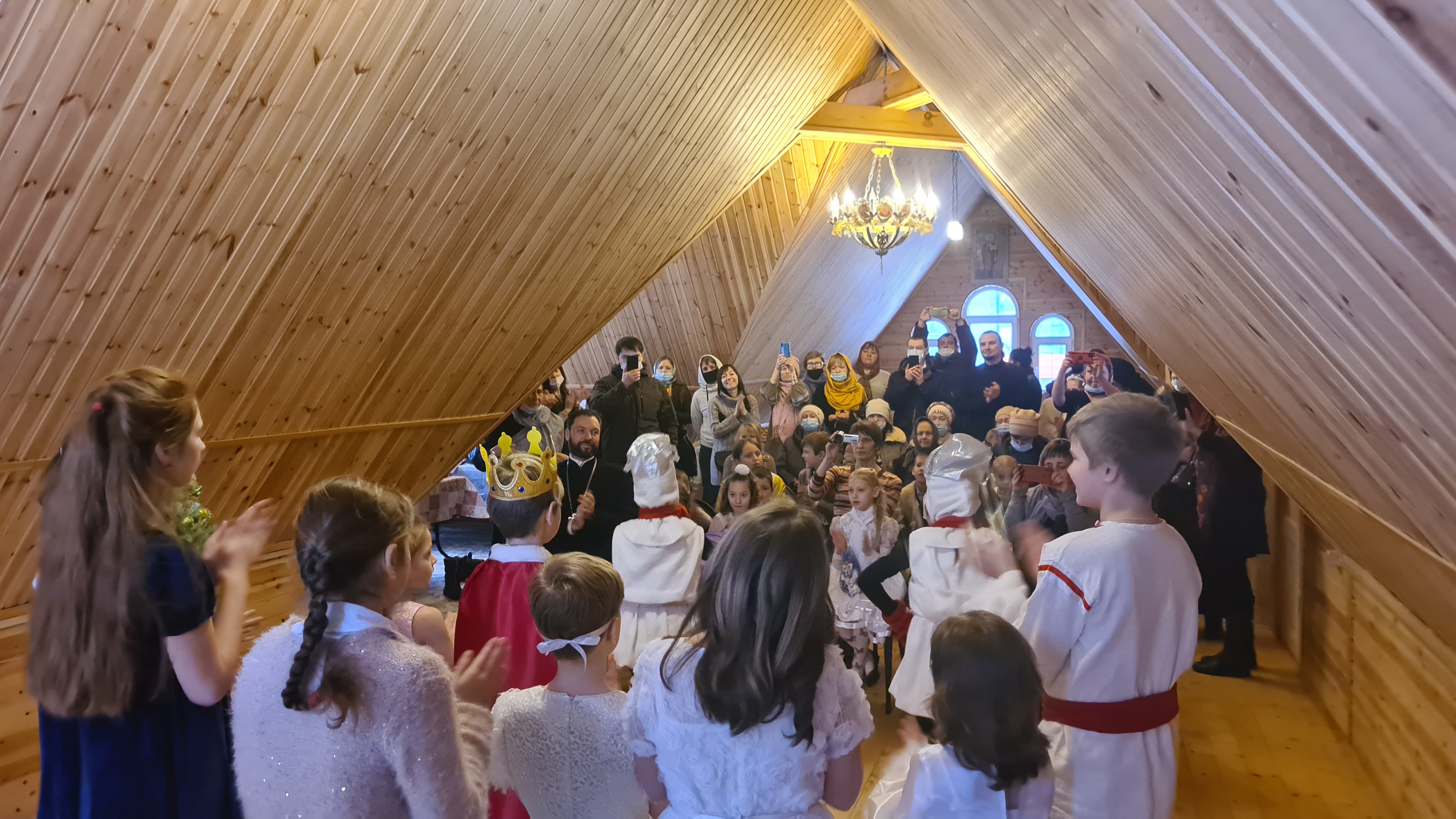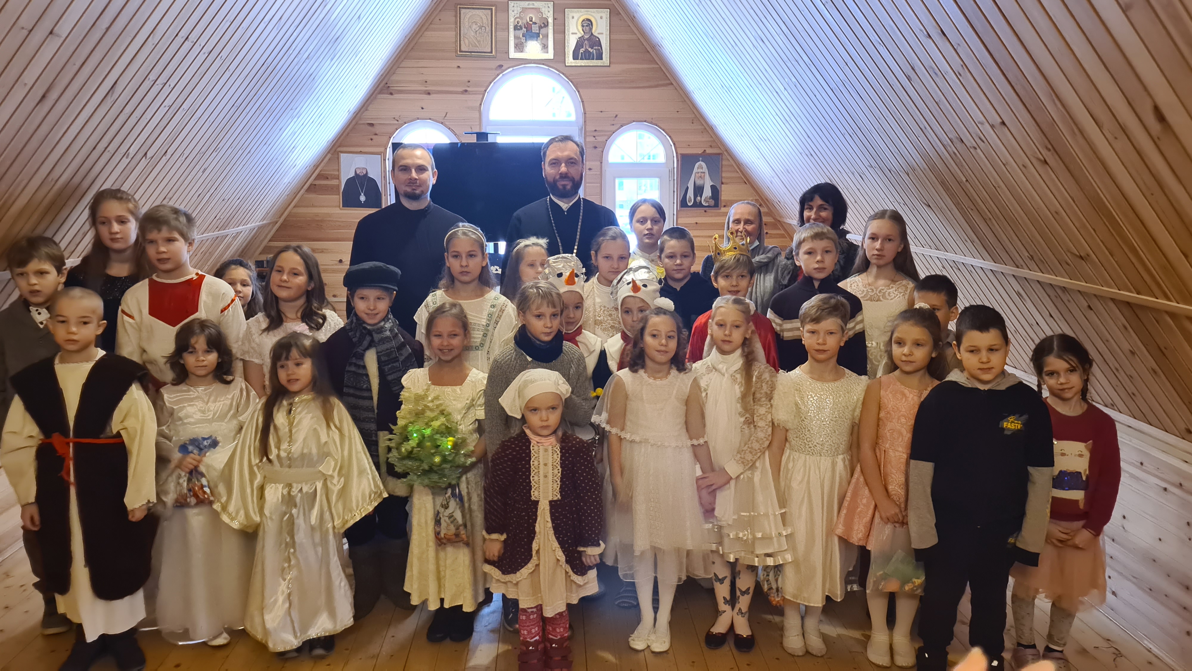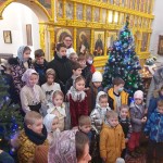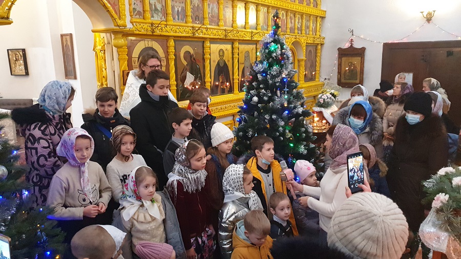 По окончании литургии состоялось славление Христа. Дети рассказали стихотворения о Рождестве Спасителя мира. Кроме того, дети вместе с родителями украсили особую елку, игрушки для которой сделали своими руками маленькие прихожане храма. По окончании детской программы, Рождественские колядки исполнили все собравшиеся в этот праздничный день.