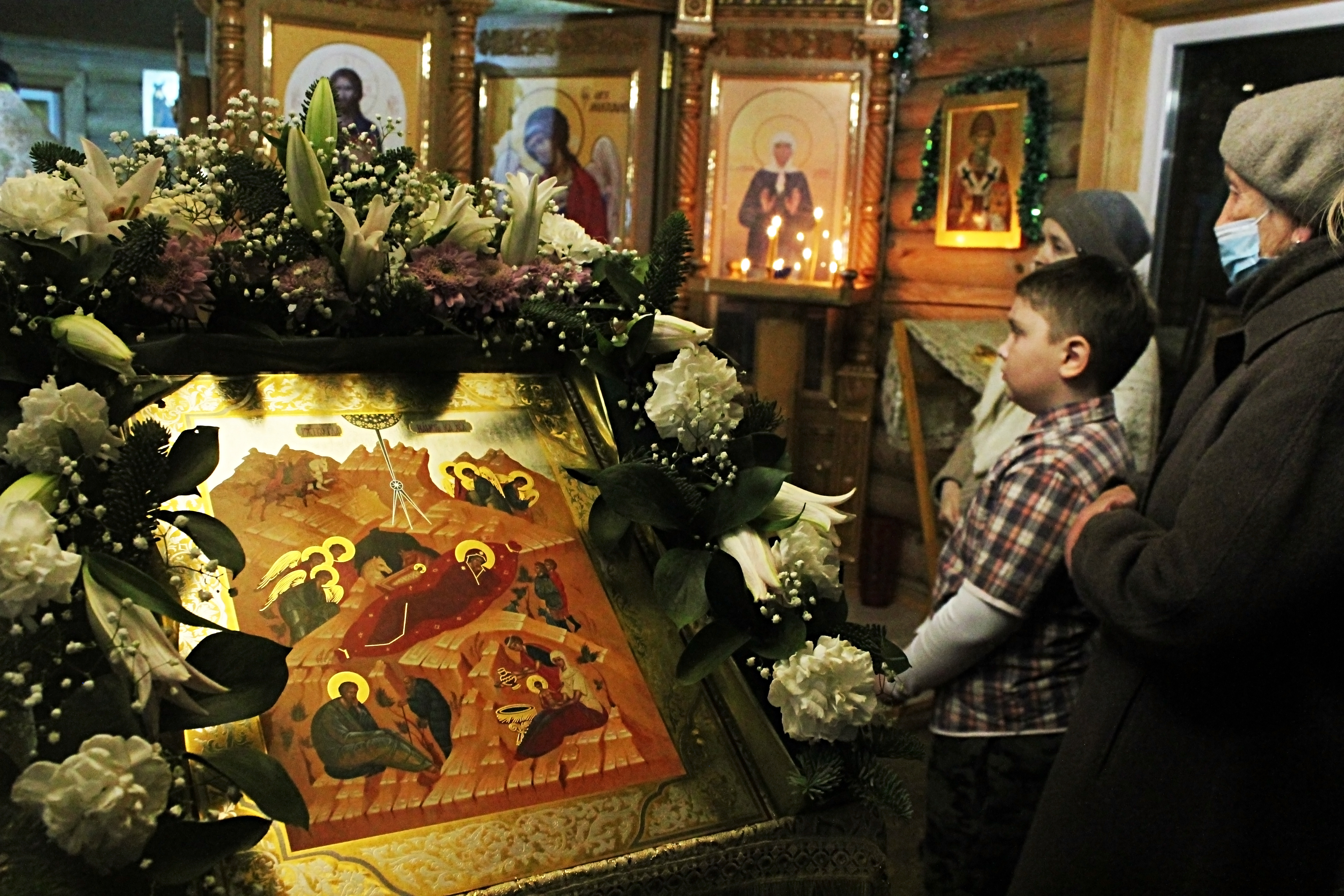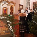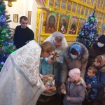 По традиции в этот день в храме много детей. Во время литургии прозвучали Рождественские послания Патриарха Московского и всея Руси Кирилла и митрополита Смоленского и Дорогобужского Исидора.