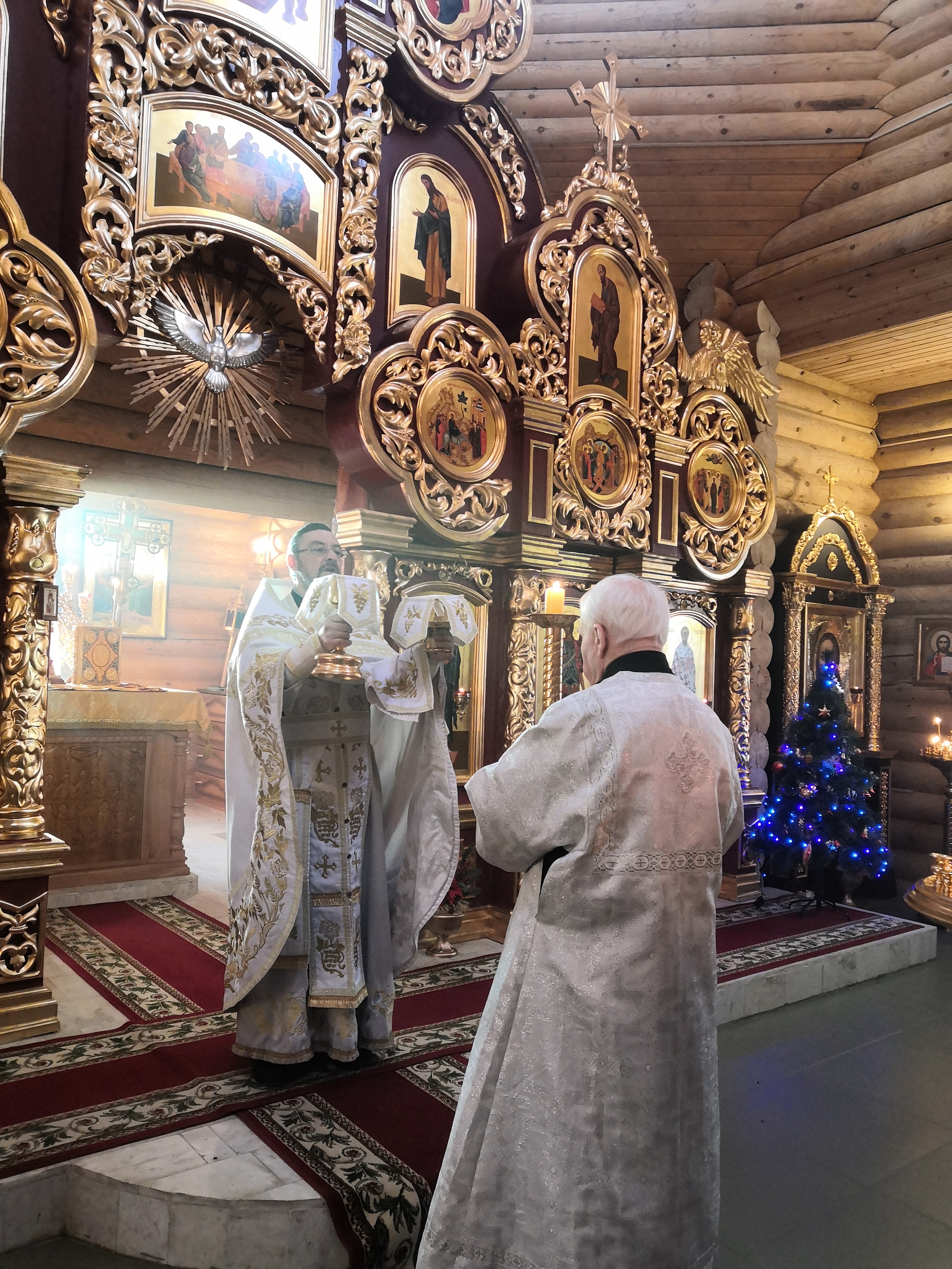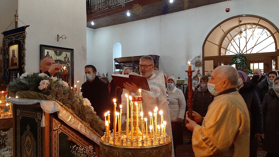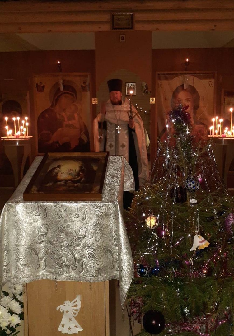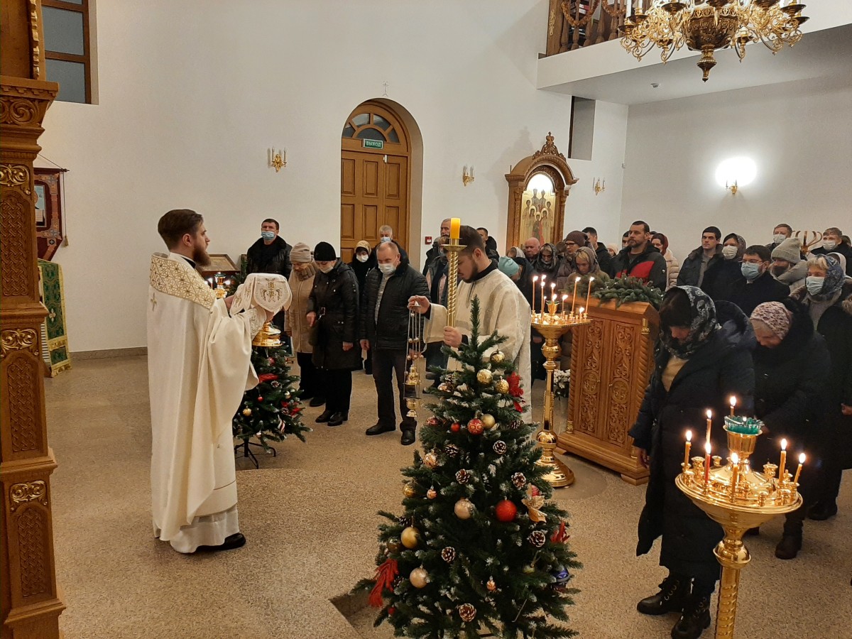 6 и 7 января в храме были совершены праздничные уставные богослужения. Протоиерей Валерий Рябоконь, настоятель храма, руководитель епархиального отдела по взаимоотношения Церкви с обществом и СМИ, в сослужении духовенства храма в Рождественскую ночь возглавил Литургию. Хор под управлением регента Анастасии Минаевой порадовал колядками прихожан.