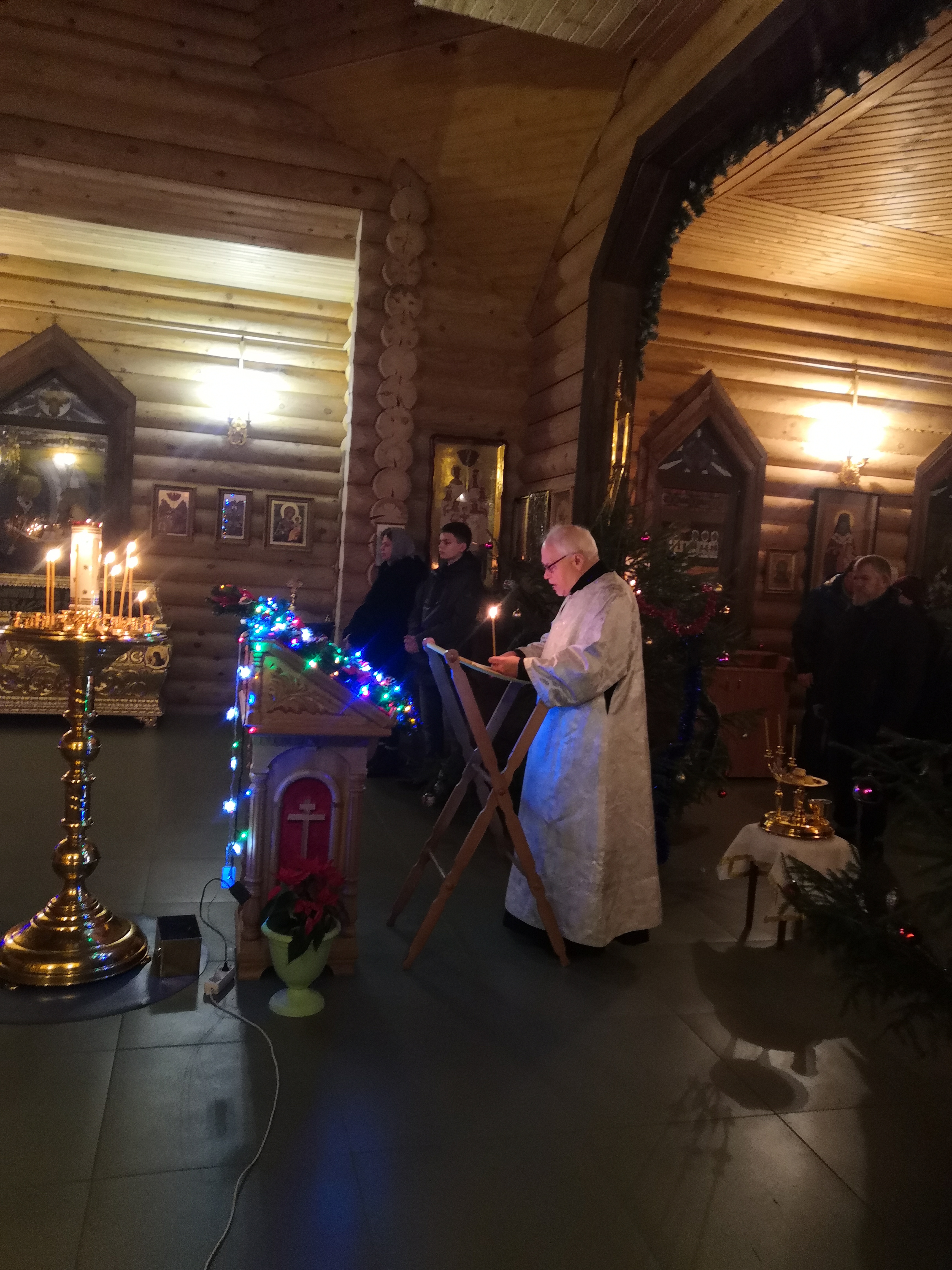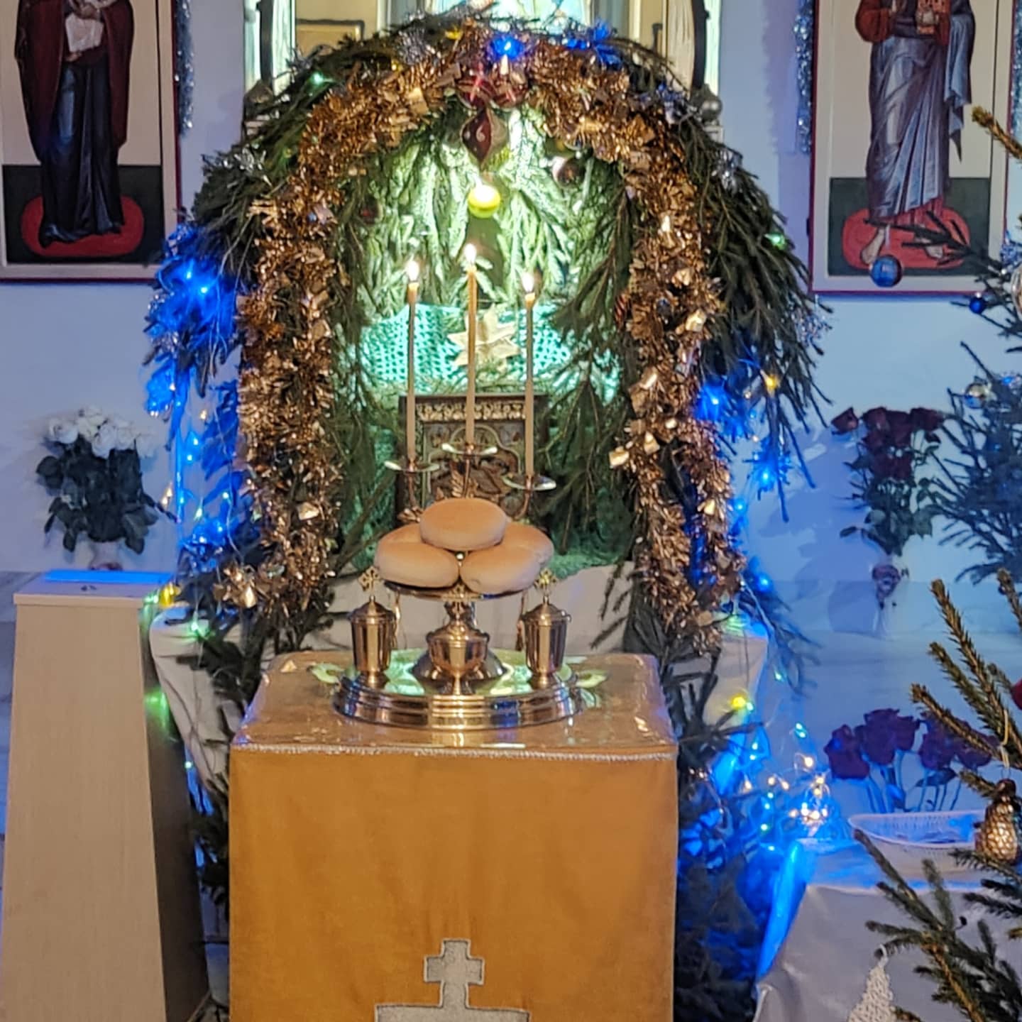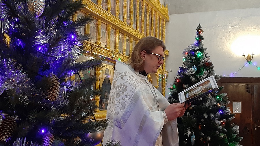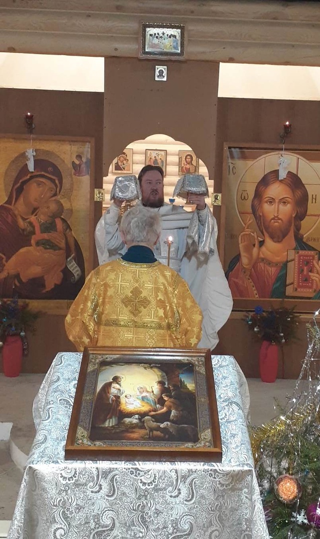 6 и 7 января в храме были совершены праздничные уставные богослужения. Протоиерей Валерий Рябоконь, настоятель храма, руководитель епархиального отдела по взаимоотношения Церкви с обществом и СМИ, в сослужении духовенства храма в Рождественскую ночь возглавил Литургию. Хор под управлением регента Анастасии Минаевой порадовал колядками прихожан.