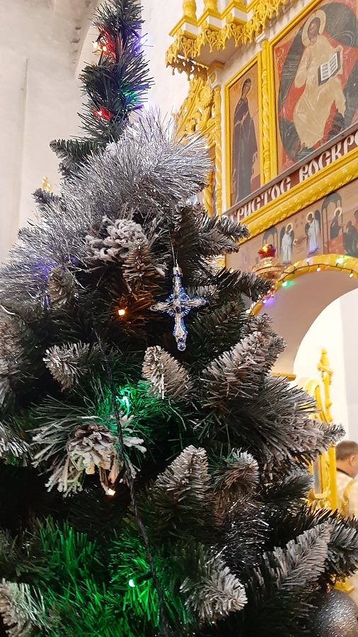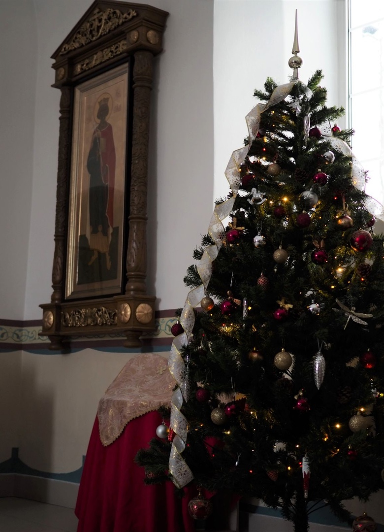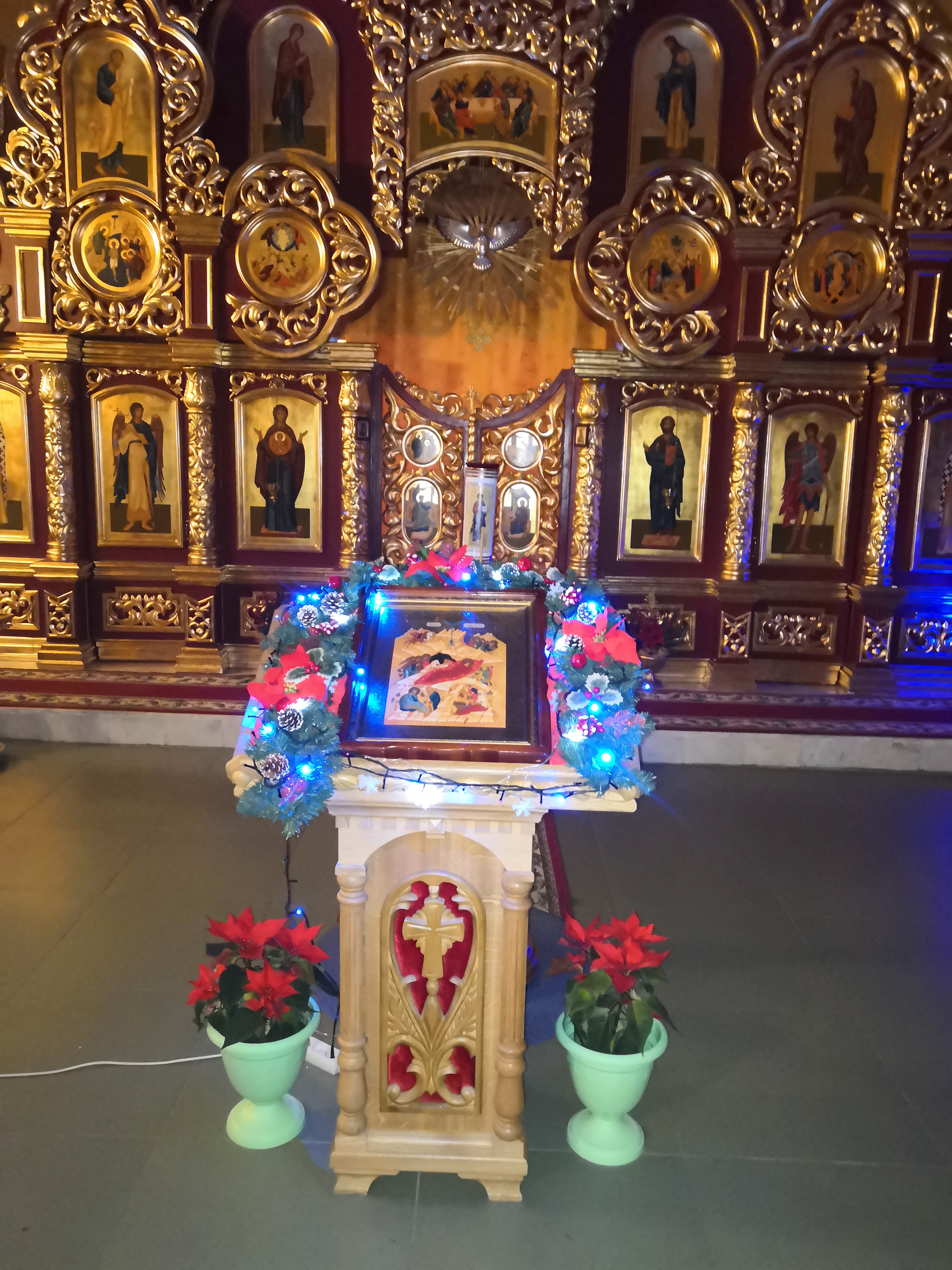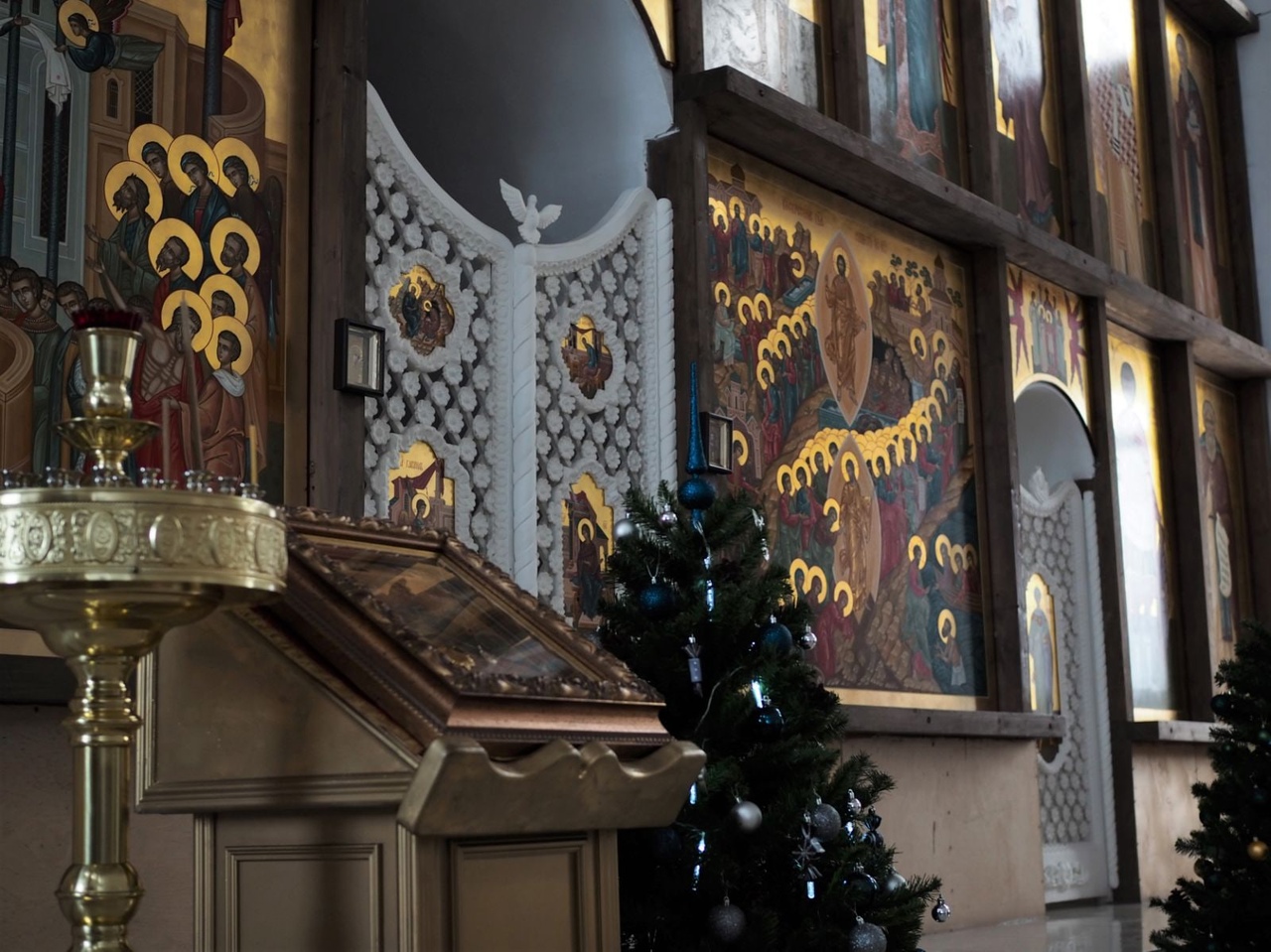 Стараниями прихожан, клириков, работников и ктиторов храм апостола Иоанна Богослова был украшен к Рождеству Христову пушистыми елями, разноцветными гирляндами, множеством цветов.