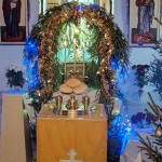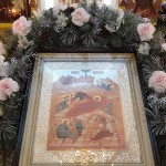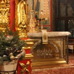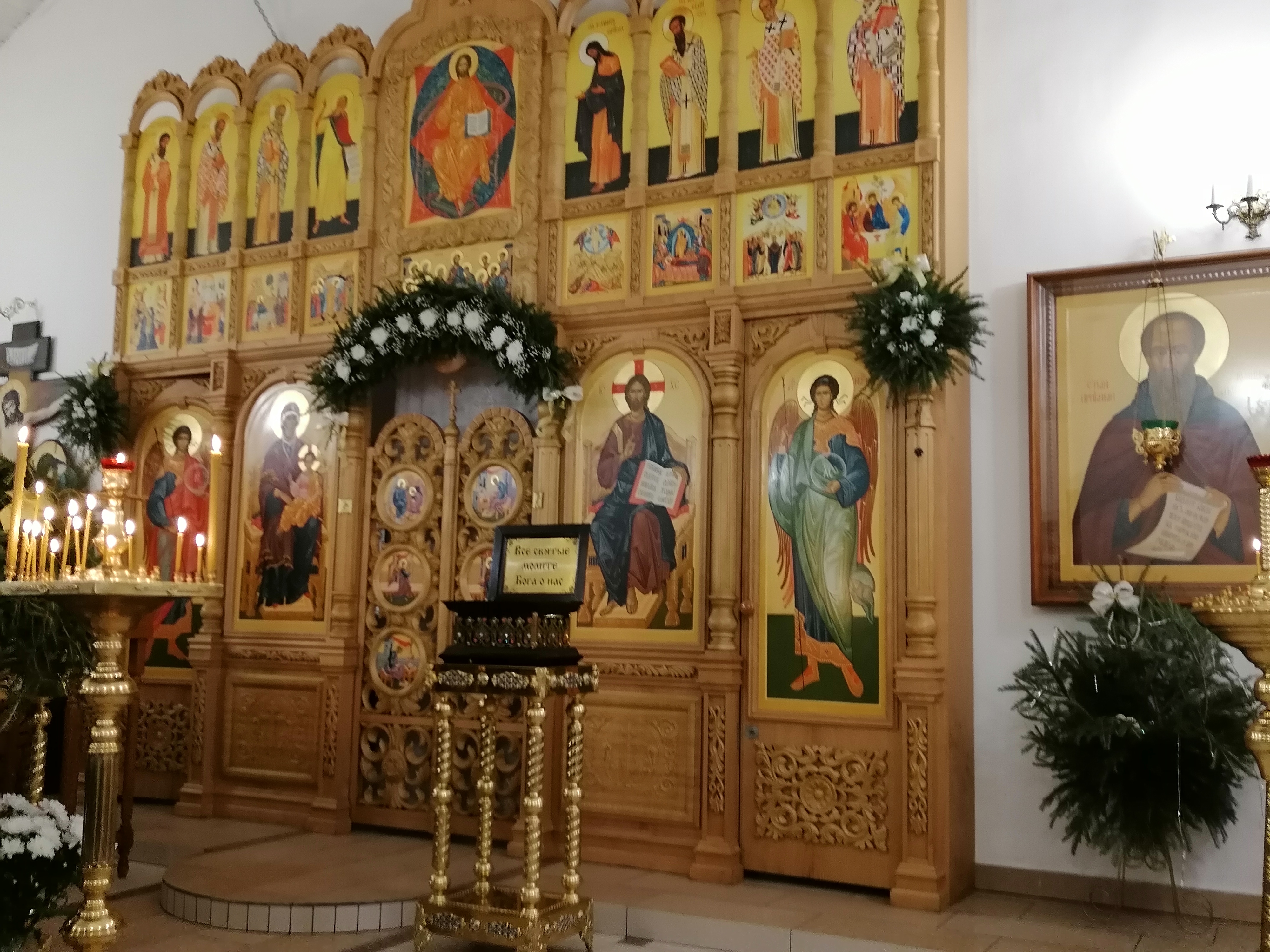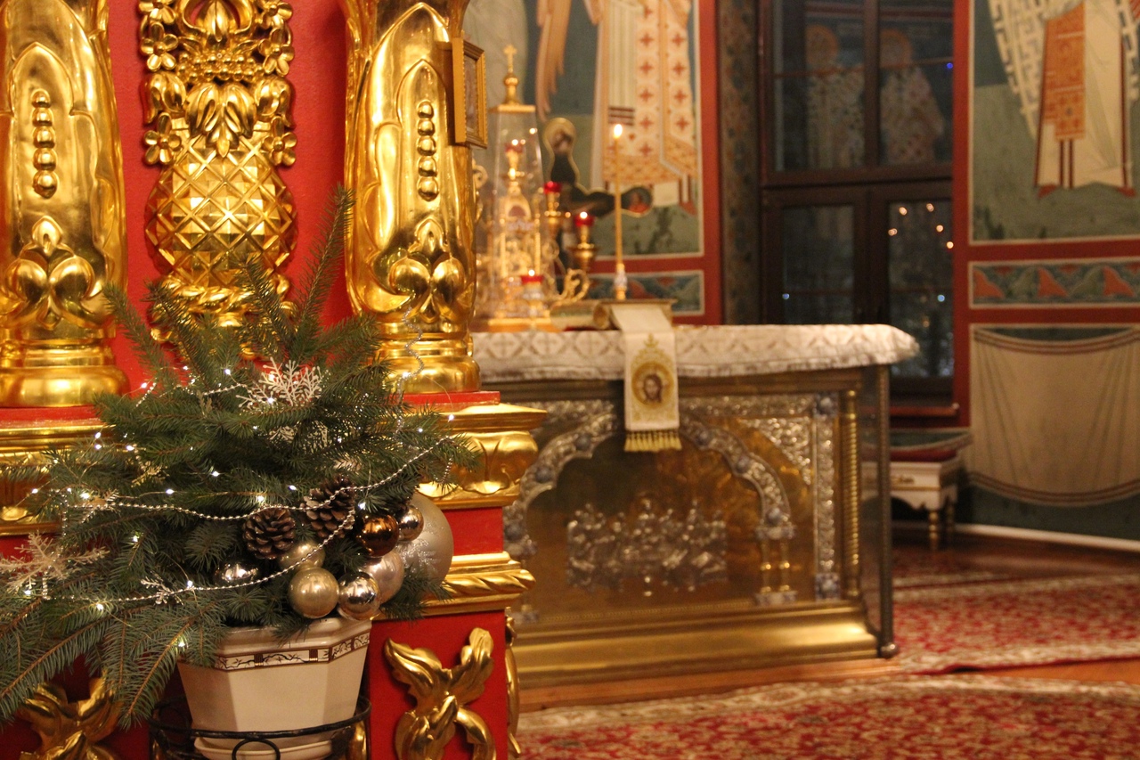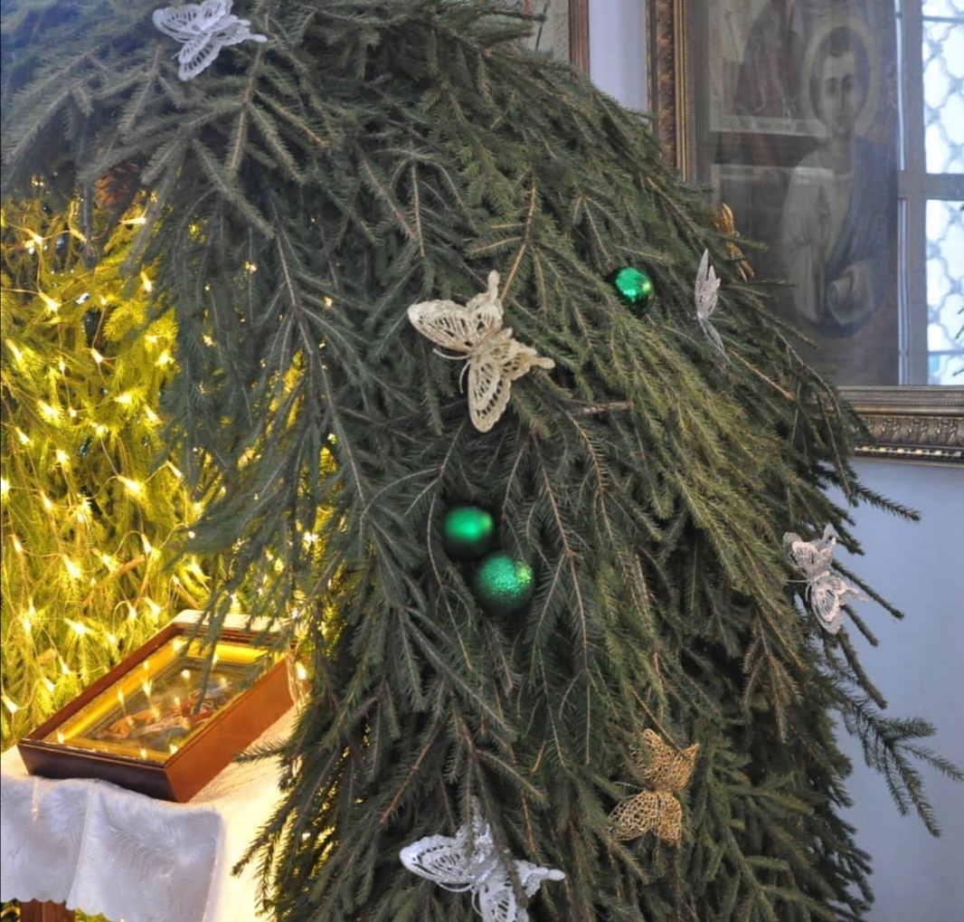 Стараниями прихожан, клириков, работников и ктиторов храм апостола Иоанна Богослова был украшен к Рождеству Христову пушистыми елями, разноцветными гирляндами, множеством цветов.