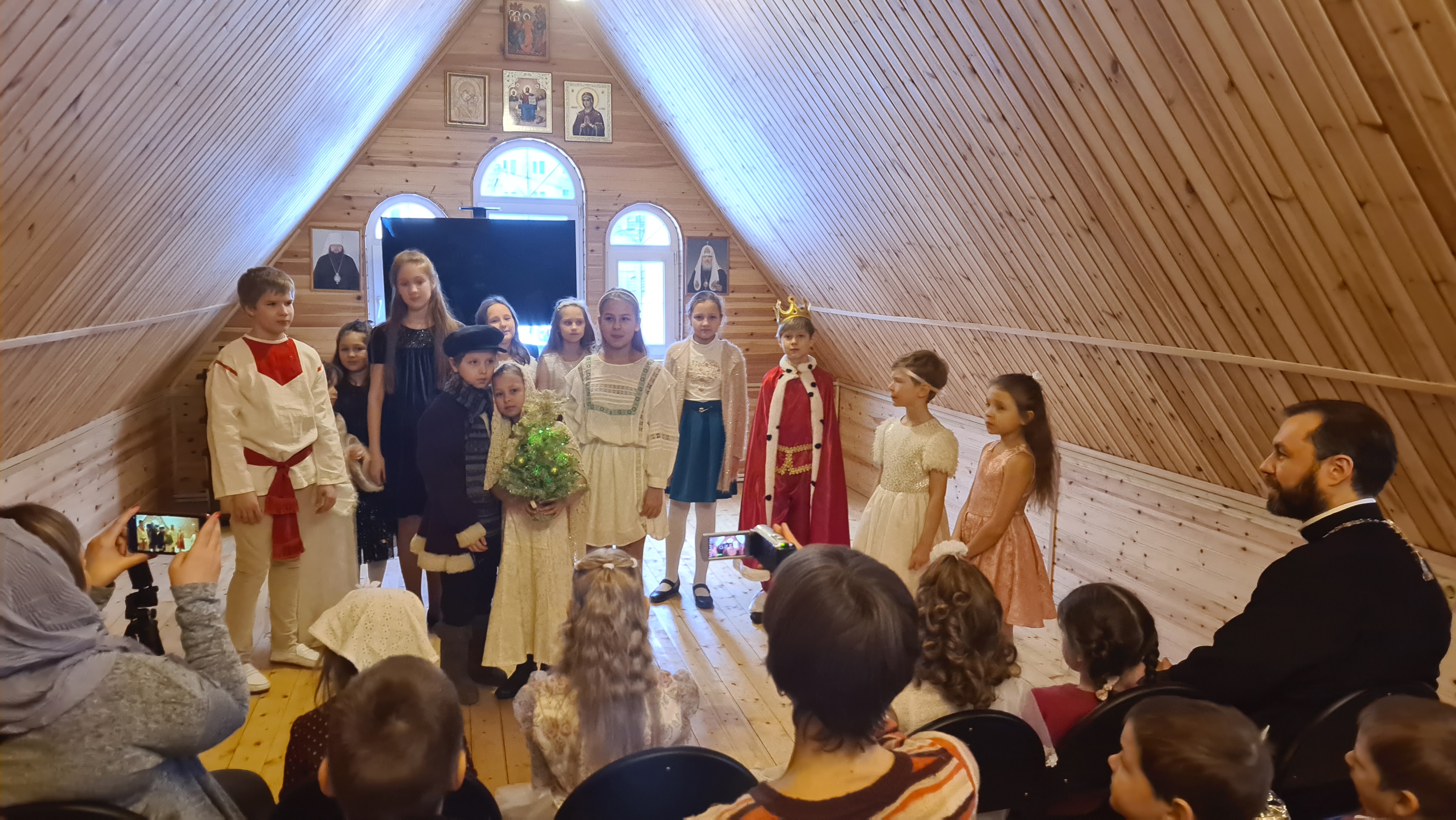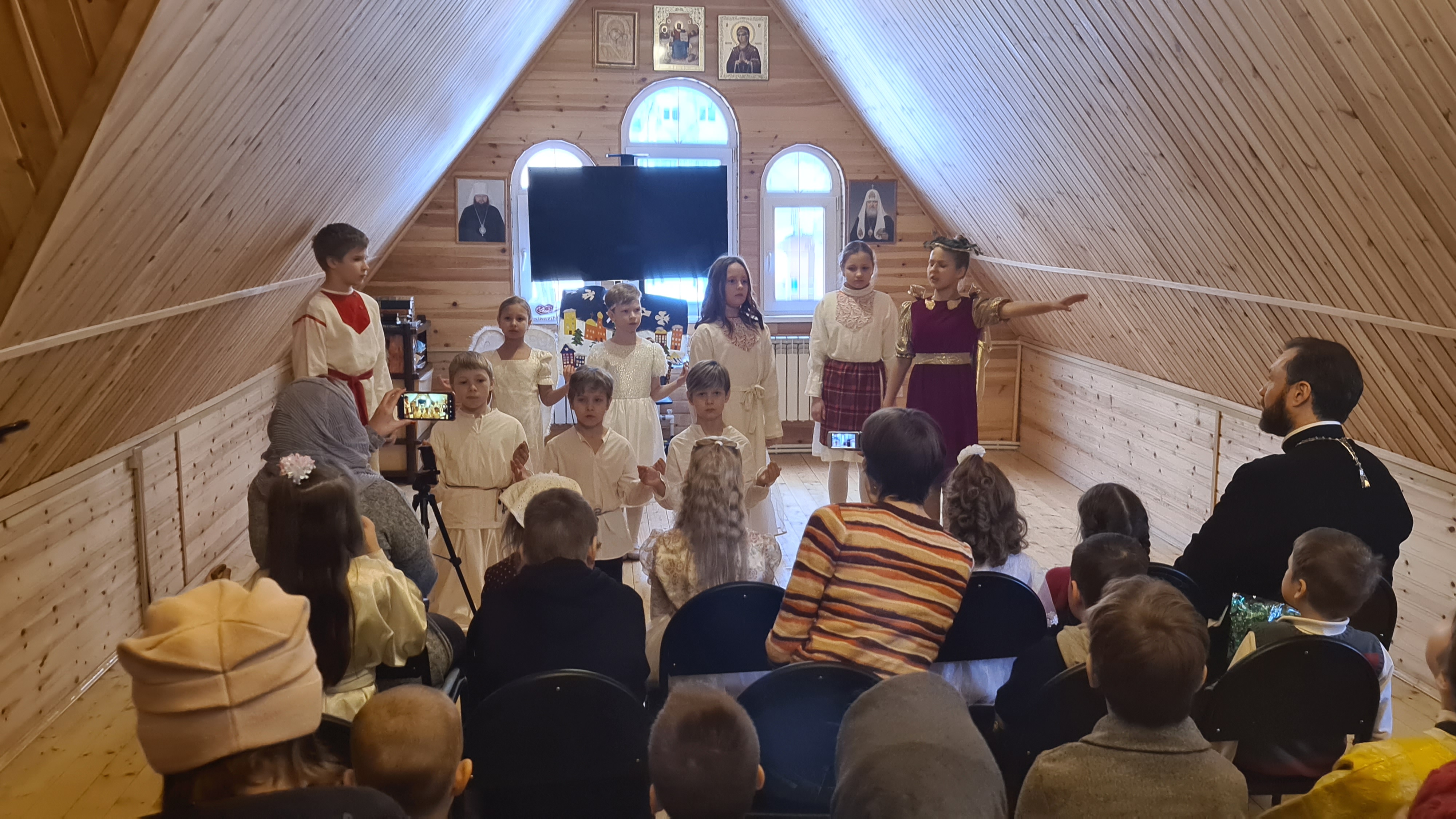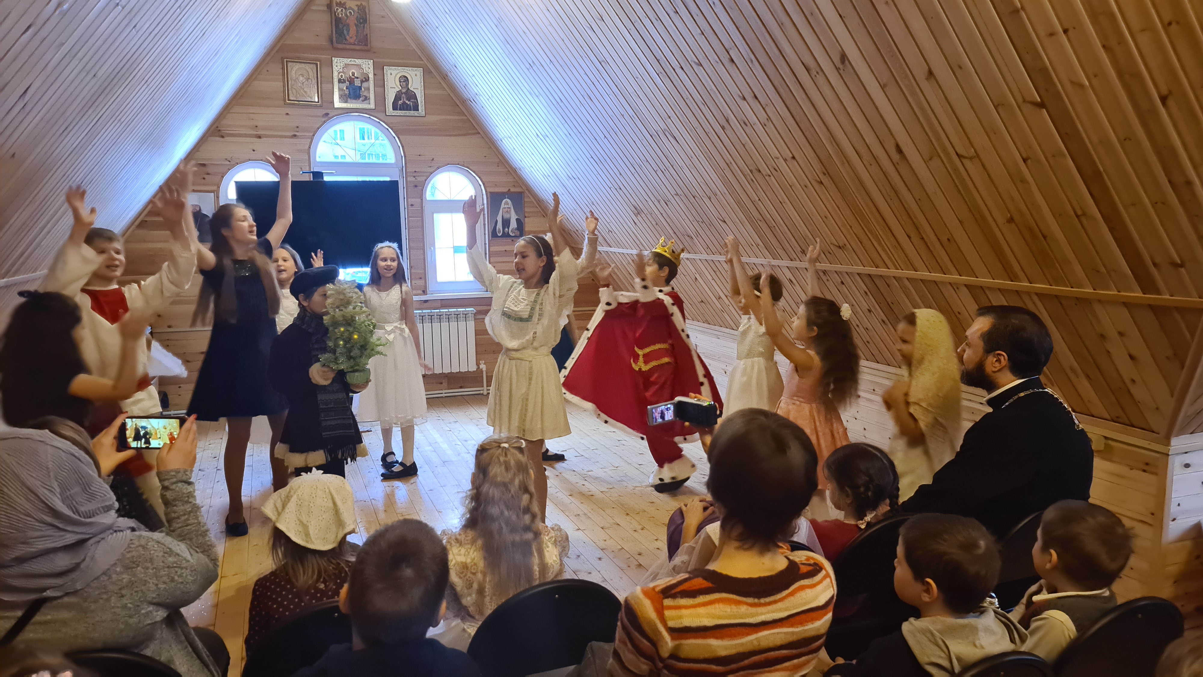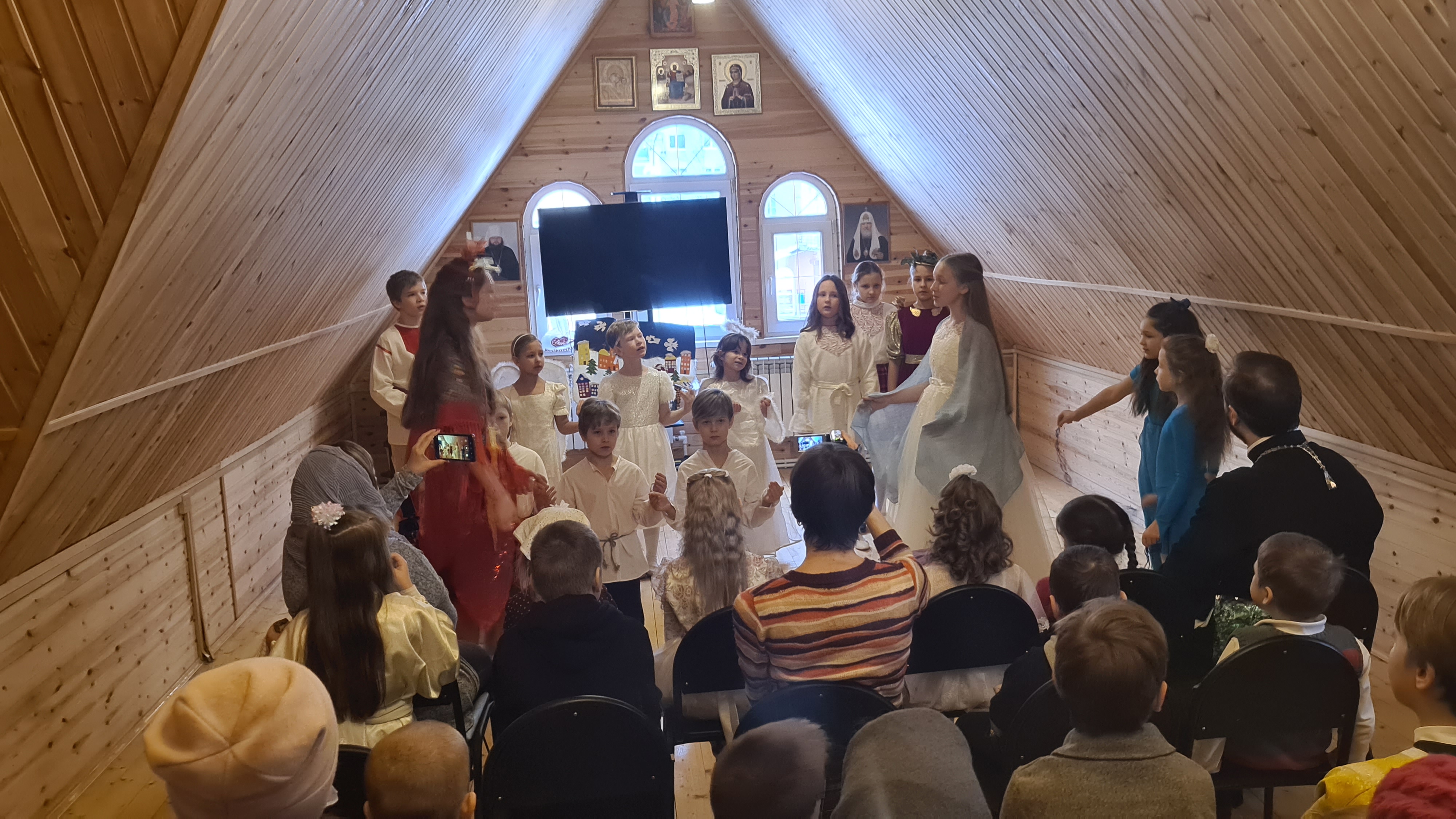 Поводом для радости стало выступление воспитанников детской воскресной школы с праздничным концертом. После выступления детям были вручены сладкие подарки.