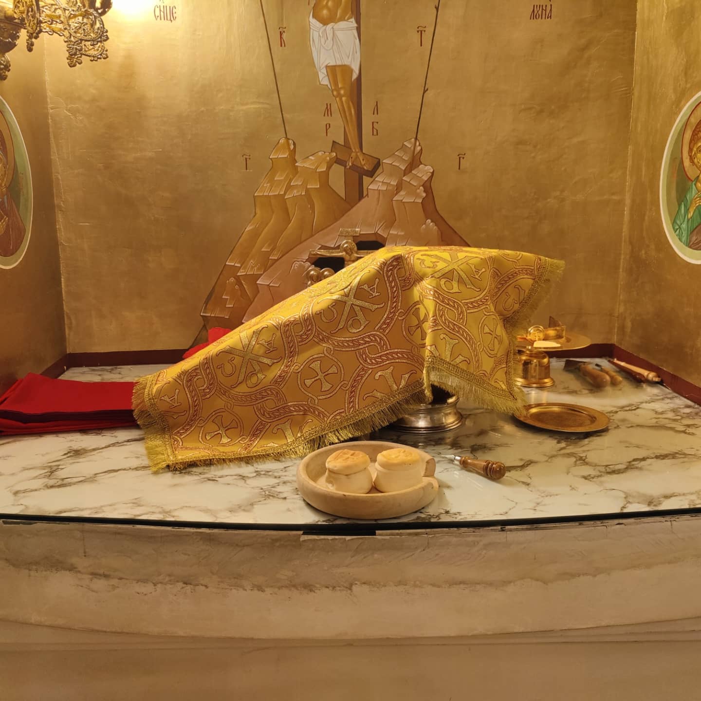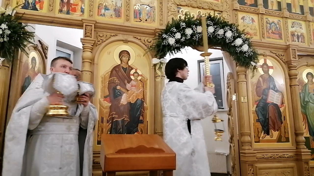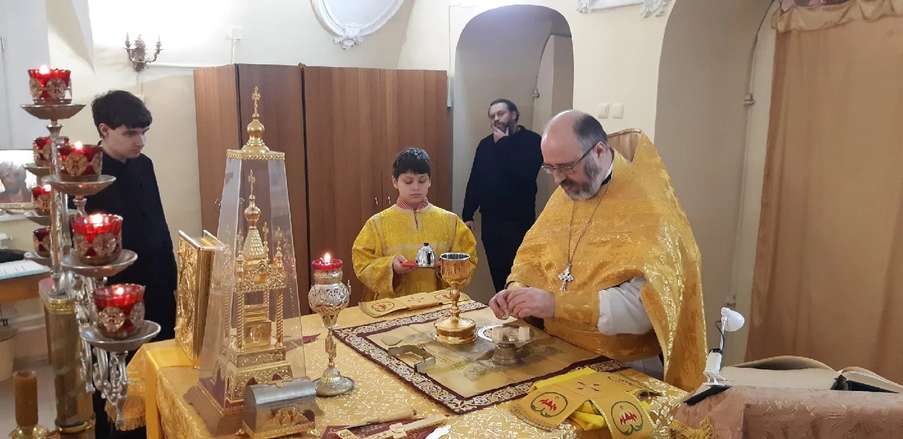 На сугубой ектении были вознесены молитвенные прошения в связи с угрозой распространения коронавирусной инфекции, молитвы о мире на Украине.