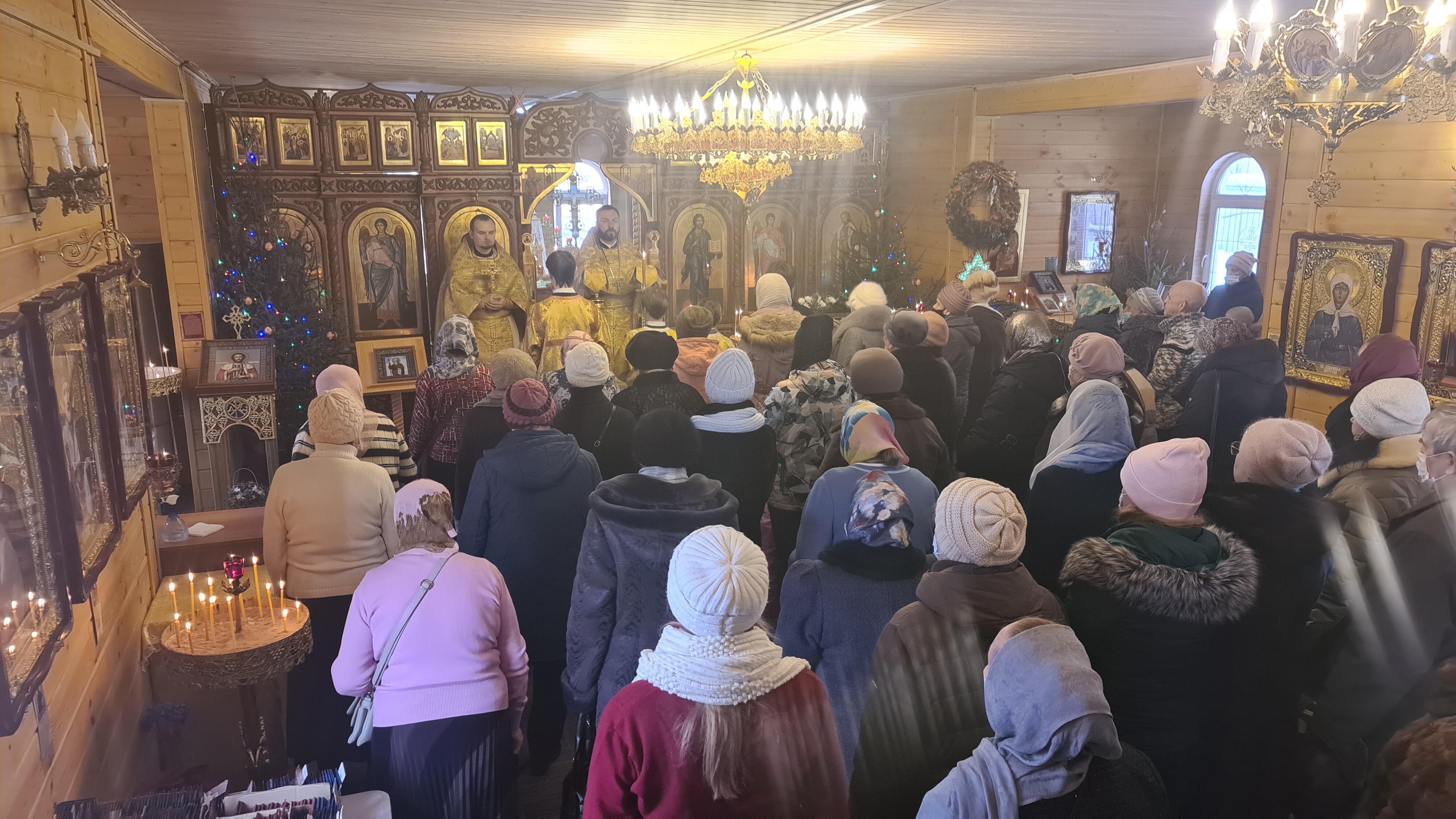 Божественную литургию святителя Иоанна Златоуста 7 января совершил настоятель храма в сослужении клириков. По окончании Божественной литургии настоятель огласил Рождественское послание Святейшего Патриарха Московского и всея Руси Кирилла, и поздравил прихожан с наступившим праздником.