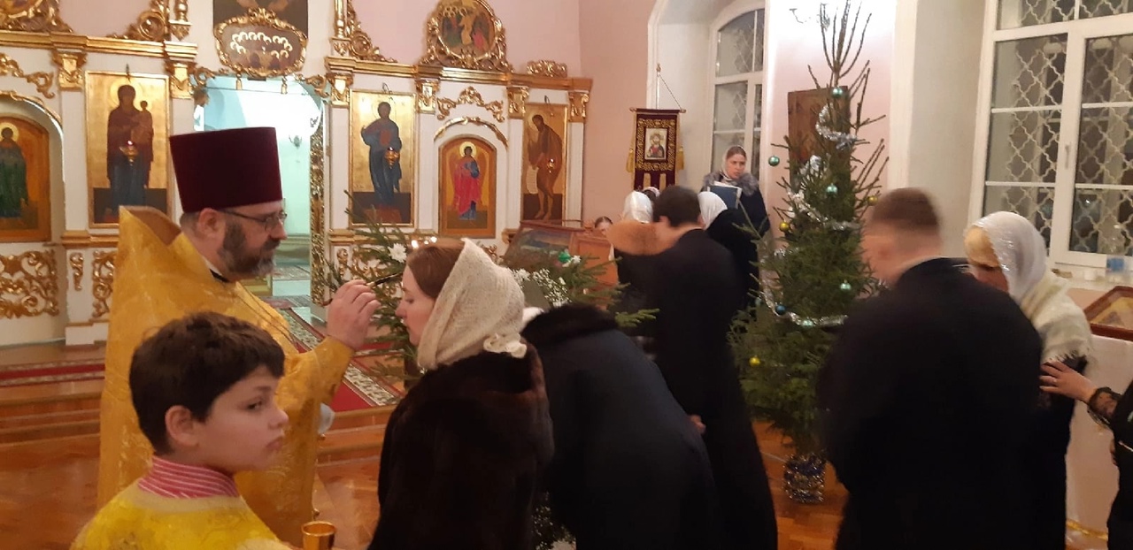 Праздничное Рождественское богослужение состоялось 8 января, в Собор Пресвятой Богородицы, в Попразднство Рождества Христова. Праздничную литургию в храме совершил протоиерей Георгий Свитцов. Настоятель поздравил всех участников богослужения с наступившим праздником Рождества Христова.