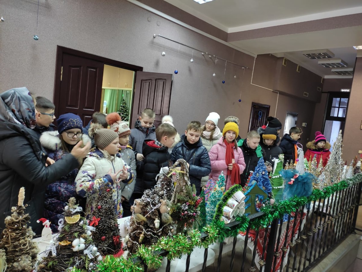 Экскурсия продолжилась в Духовно-просветительском центре Прихода, где школьников ждала сказочная выставка праздничных елок.