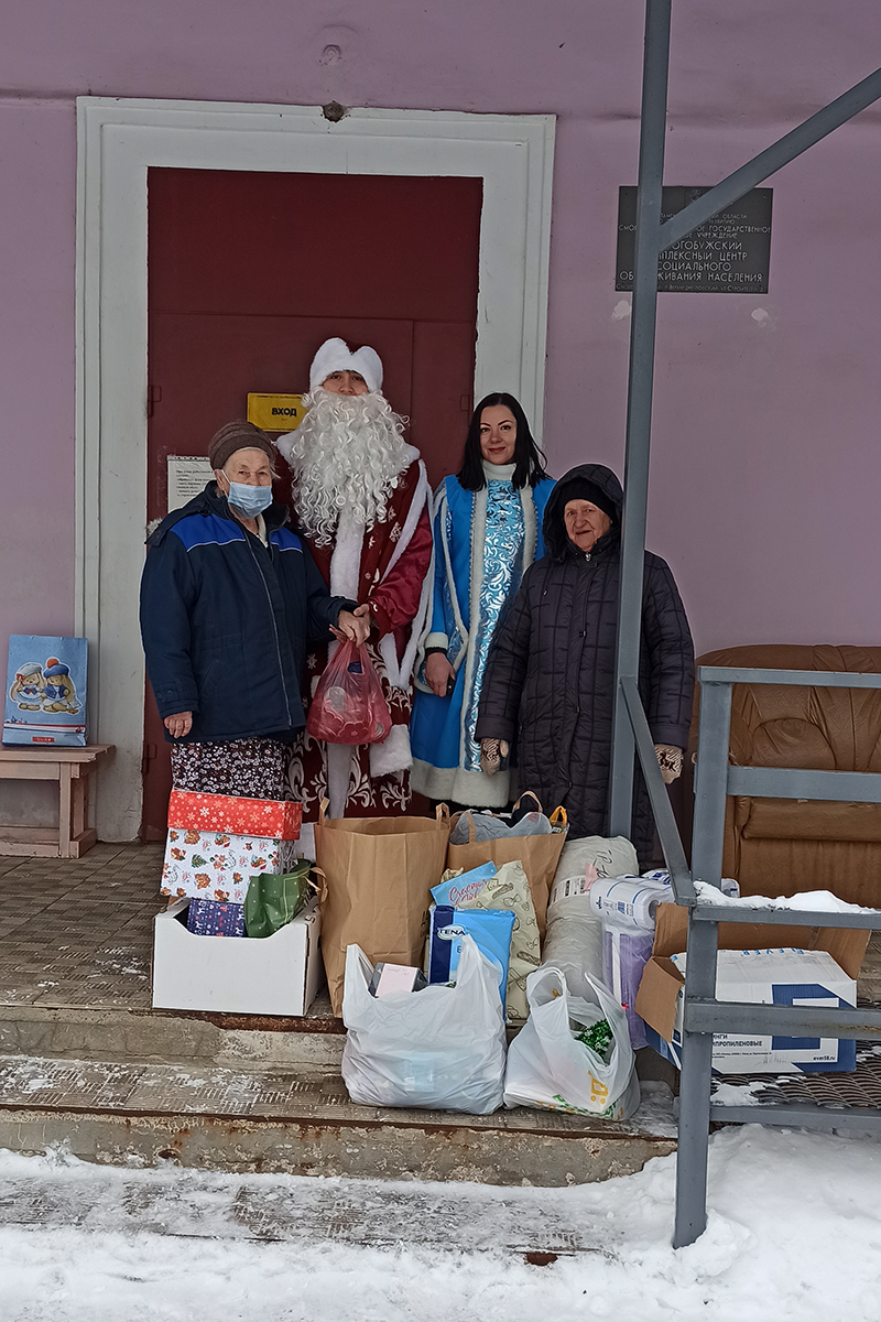 С нетерпением ждали встречи с добровольцами службы пожилые люди в СОГБУ «Дорогобужский КЦСОН». Бабушки и дедушки оделись и вышли на улицу, чтобы встретить долгожданных гостей. Поздравить с праздниками подопечных приехали Дед Мороз и Снегурочка.