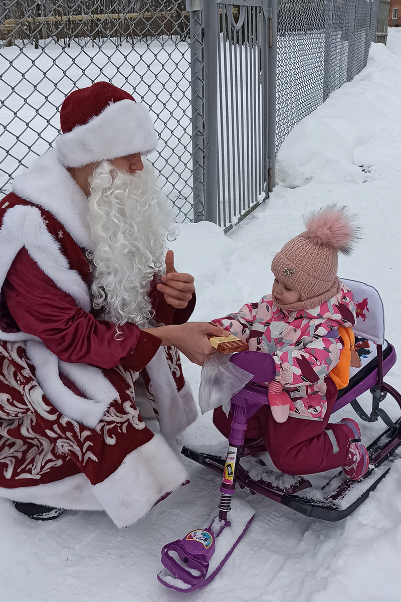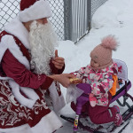 На обратном пути наши добровольцы поздравили с праздниками и прохожих – семью с ребенком. Маленькая девочка была так впечатлена встречей с Дедом Морозом и Снегурочкой, что остановилась и захотела обнять наших скромных героев, а в большом мешке нашлись и конфеты для ребенка.
