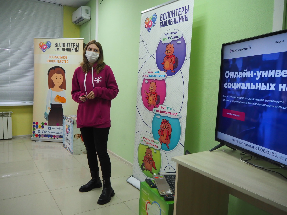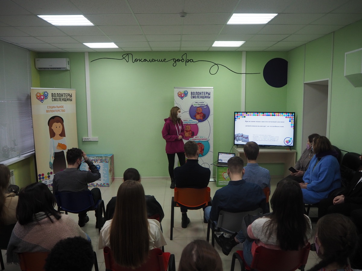 26 января 2022 года в Региональном центре добровольчества (волонтерства) Смоленской области состоялось занятие «Я-волонтер» для участников студенческого сообщества «Созидание сердец» из Смоленского педагогического колледжа, Смоленской Православной Духовной семинарии и Центра подготовки церковных специалистов Смоленской епархии. Мероприятие прошло с учетом соблюдения санитарно-эпидемиологических норм и рекомендаций в условиях пандемии.