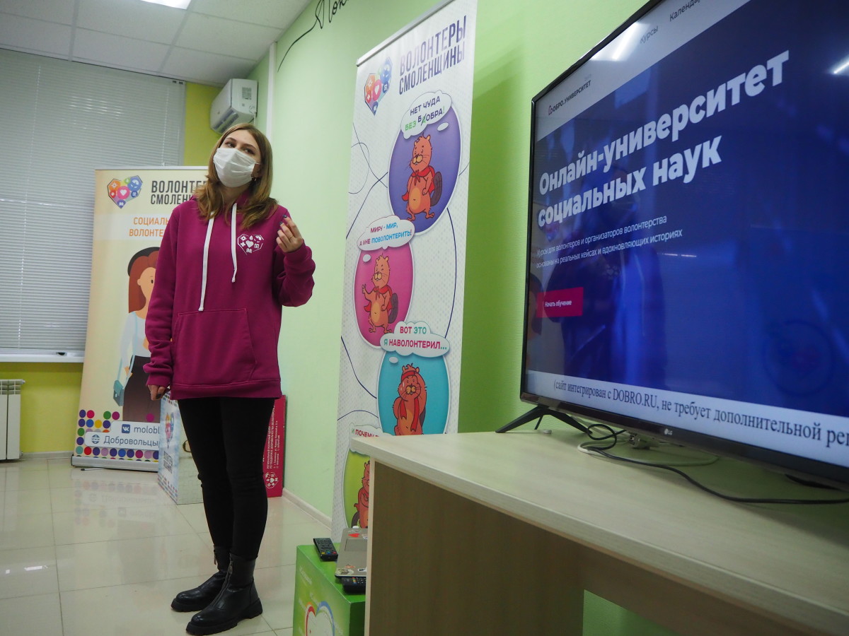 Студенты смогли задать волнующе их вопросы специалистам Ресурсного центра, познакомились с работой волонтеров колл-центра штаба по борьбе с COVID-19, расположенного в Региональном ресурсном центре по поддержке добровольчества (волонтерства) Смоленской области.