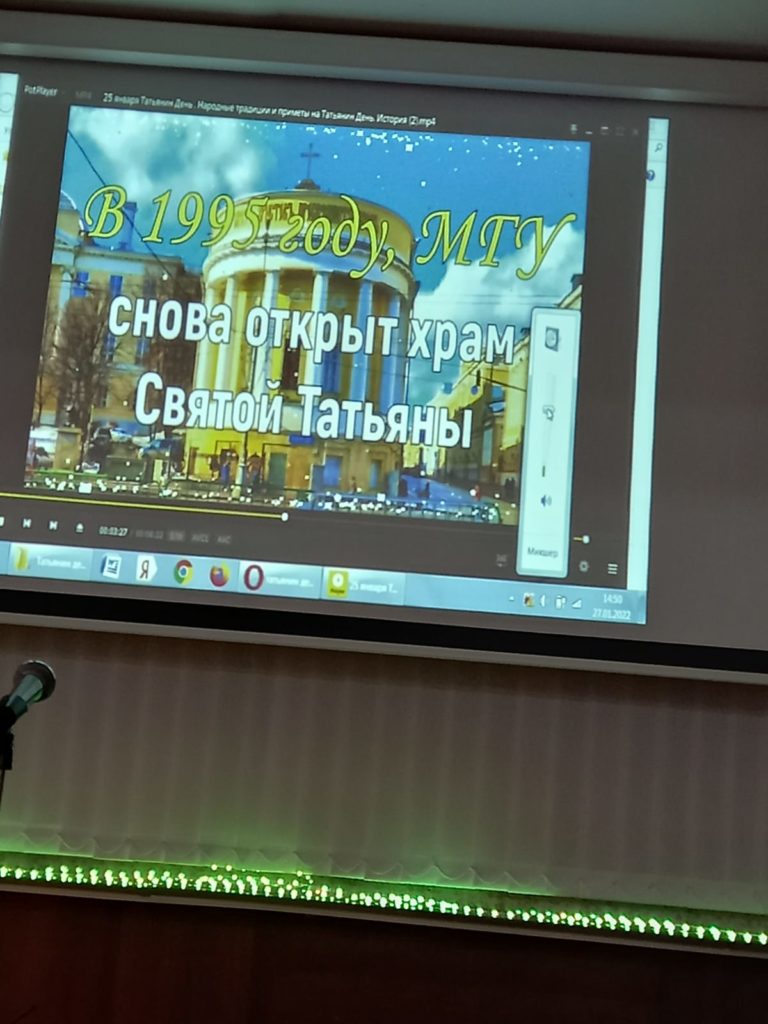Присутствующие просмотрели видеофильм «25 — января Татьянин День. Народные традиции и приметы на Татьянин День. История праздника»