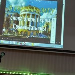 Собравшимся в зале был продемонстрирован видеоролик с проповедью протоиерея Димитрия Смирнова под день памяти святой мученицы Татианы.