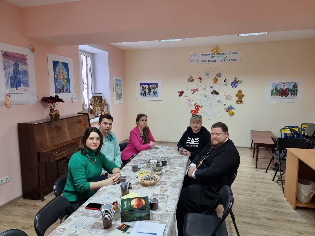 28 января 2022 года состоялась встреча руководителя Отдела Смоленской епархии по социальному служению и церковной благотворительности иерея Дионисия Давыдова с представителями областного отделения всероссийского общественного движения «Волонтеры-медики». Во встрече приняли участие начальник управления по воспитательной и социальной работе ФГБОУ ВО СГМУ Елена Владимировна Дмитриева, окружной координатор ЦФО ВОД «Волонтеры Медики» Алексей Масляный, координатор епархиальной добровольческой службы «Милосердие» Мария Титова, бухгалтер МРО Православное Сестричество во имя Смоленской иконы Божией Матери «Одигитрия» г. Смоленска СЕ РПЦ (МП) Светлана Данилова.