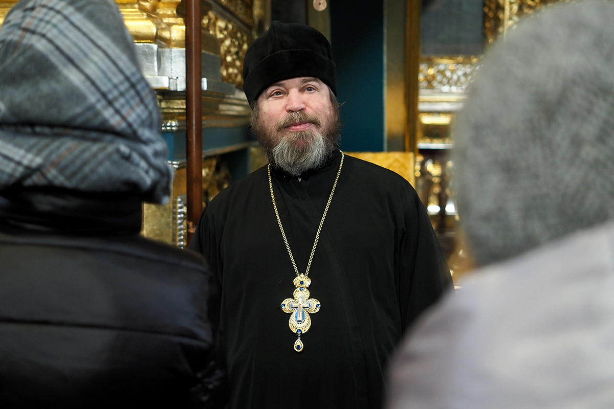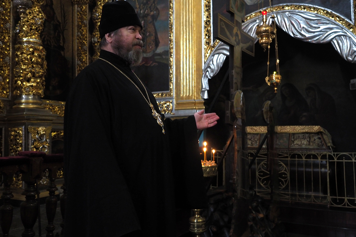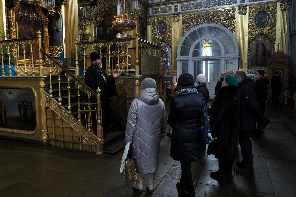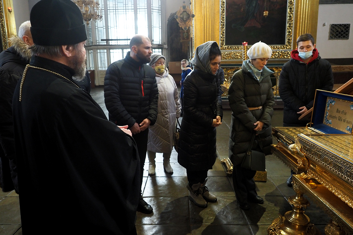 Экскурсию по Свято-Успенскому кафедральному собору провел член правления Смоленского отделения Российского фонда мира, клирик Свято-Успенского кафедрального собора протоиерей Михаил Горовой. Священник рассказал о святынях и истории собора, пожелал гостям города успехов в миротворческих трудах, а также подарил каждому по иконе Божией Матери Одигитрии.