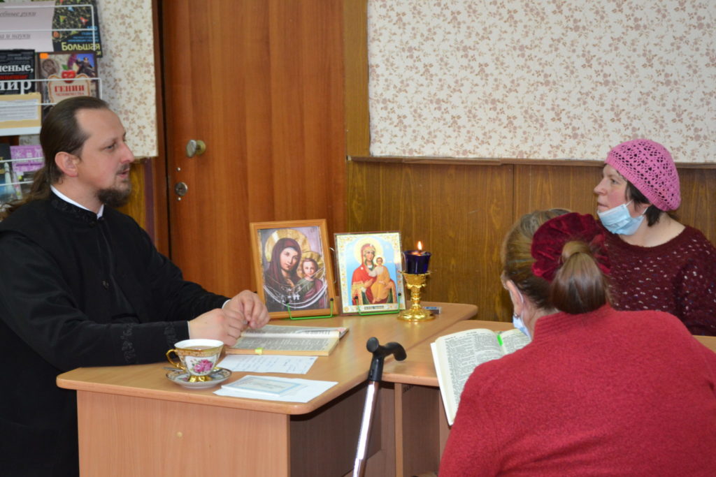 Лекторий проходил в привычном формате в ГКУК «Смоленская областная специальная библиотека для слепых». Игумен Николай продолжил чтение Евангелие от Луки, глава двадцать вторая. Речь шла о последних днях Христа, Его предательстве Иудой Искариотским, 30-ти серебрянниках.