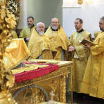 Его Высокопреосвященству сослужили секретарь Смоленского епархиального управления, настоятель Свято-Успенского собора иерей Владислав Баган и духовенство кафедрального храма.