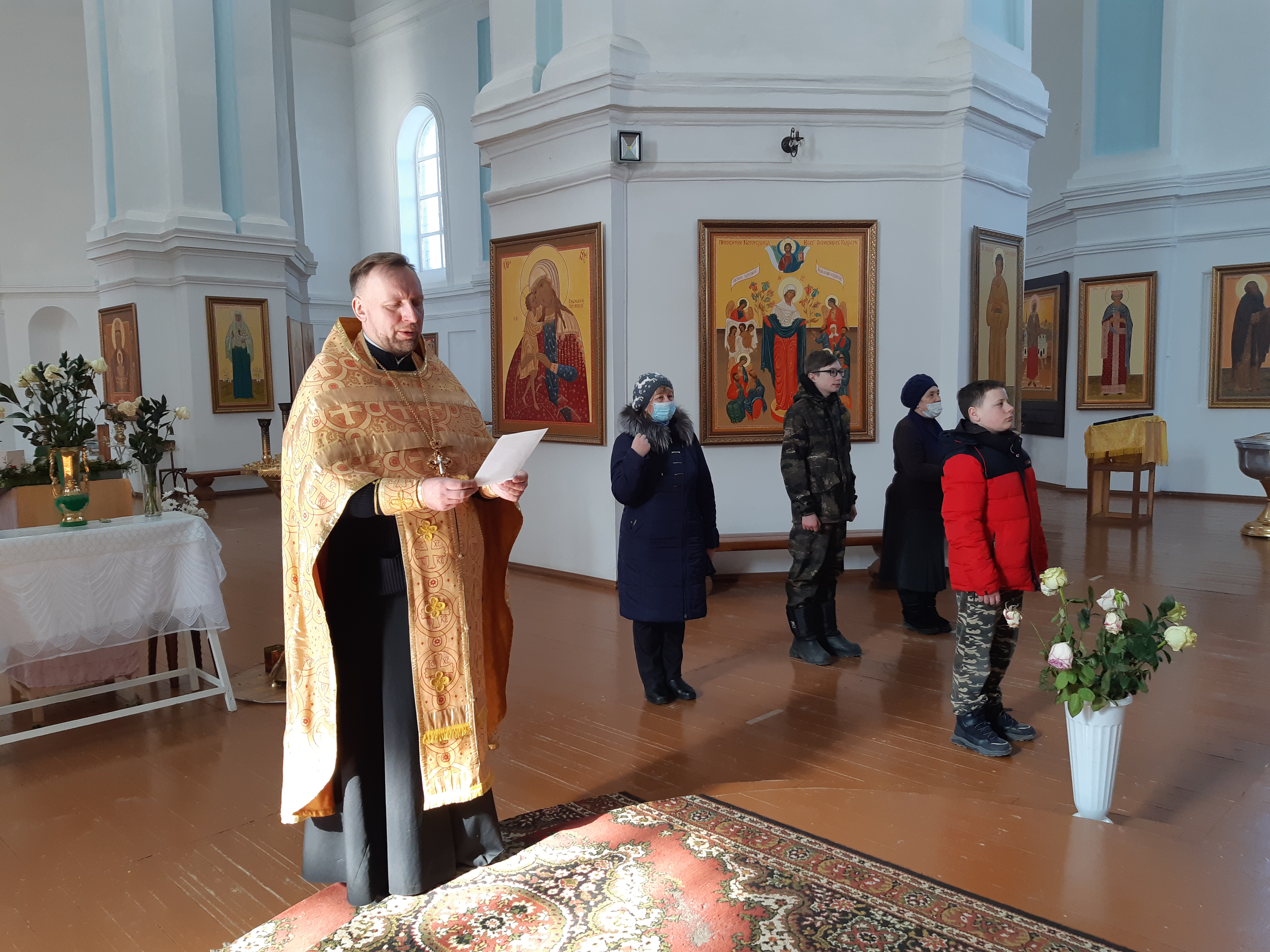 Отец благочинный, обращаясь к присутствующим в храме прихожанам, отметил, что в самом названии Прощеного воскресенья отразилось понимание православным народом важности прощения в духовной жизни человека, и благословил молящихся на Великий пост, пожелав им провести его достойно, чтобы с радостью в сердце встреть Светлое Христово Воскресение. Также на приходе продолжился сбор гуманитарной помощи беженцам из юга-востока Украины. Всем присутствующим на богослужении были розданы молитвы о восстановлении мира. В завершении была организована праздничная трапеза.
