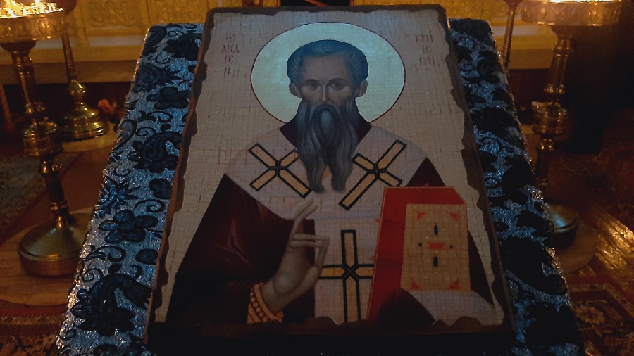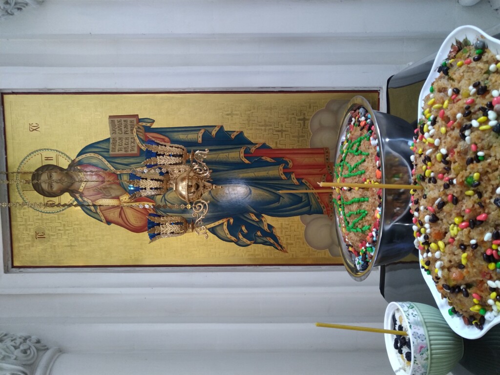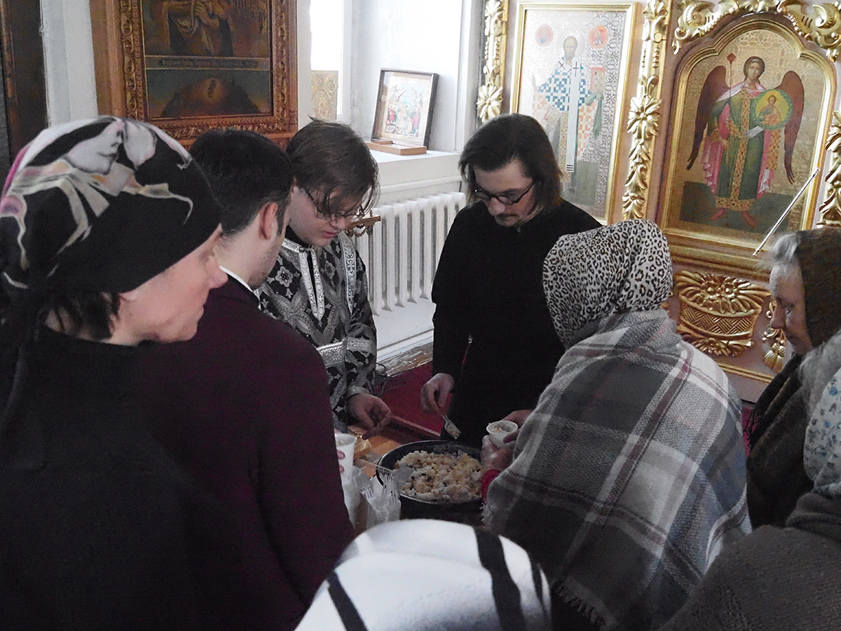 По заамвонной молитве состоялось молебное пение великомученику Феодору Тирону и благословение колива, которое затем раздали всем, кто пришел в этот день в храм.