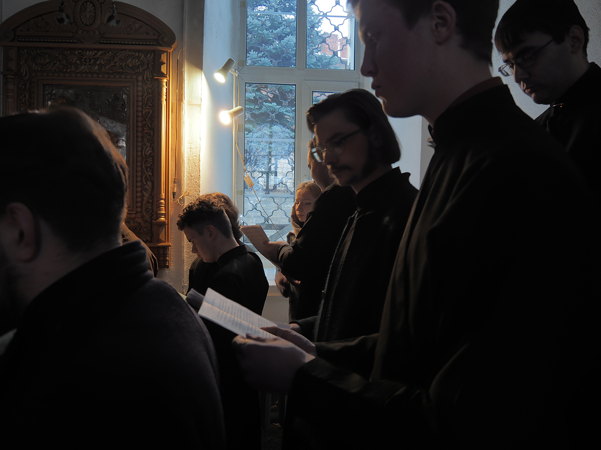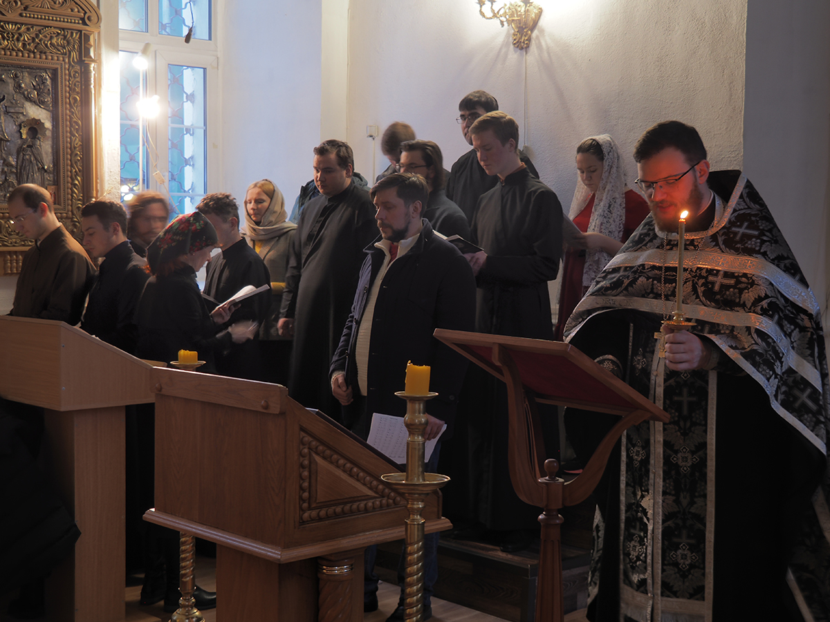 В храме Смоленской Православной Духовной семинарии в честь Покрова Пресвятой Богородицы состоялись уставные богослужения первой седмицы Великого Поста: с понедельника по четверг — Великий покаянный канон преподобного Андрея Критского, в пятницу — Литургия Преждеосвященных Даров.