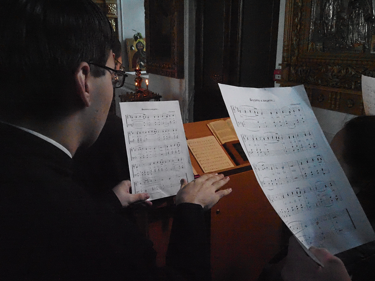 Песнопения богослужений исполнил студенческий хор семинарии под руководством регента Анны Евсеевой и студента IV курса духовной школы Егора Парулина.