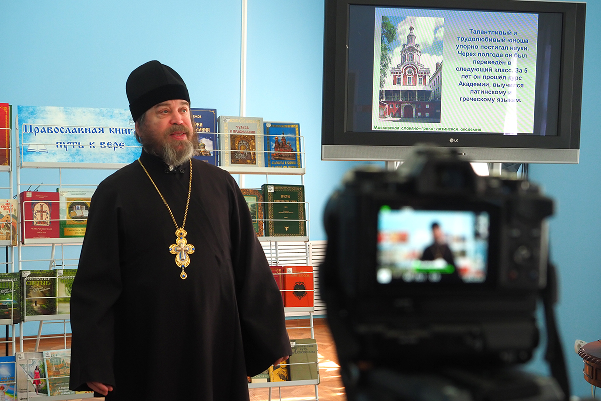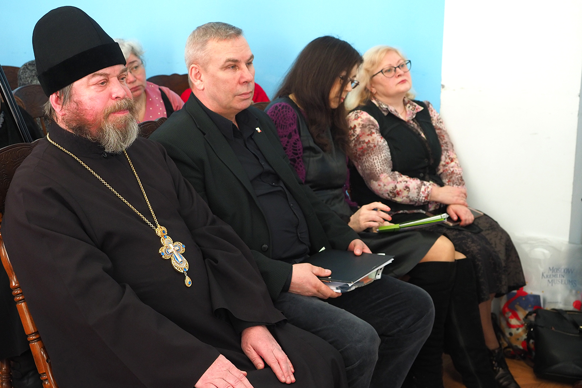 Духовенство на встрече представлял председатель комиссии по православным библиотекам и кафедрам православной литературы Смоленской епархии, духовный руководитель Одигитриевского творческого объединения, клирик Свято-Успенского кафедрального собора протоиерей Михаил Горовой.