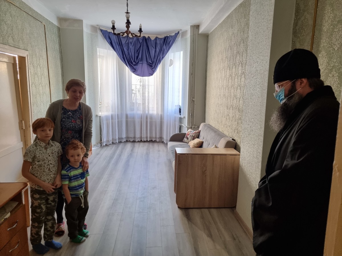Владыка Исидор передал семье продукты, пообщался с матерью и детьми, пригласил их на занятия в православную семейную гостиную «Радонеж», которая работает при епархиальном Отделе по социальному служению и церковной благотворительности.