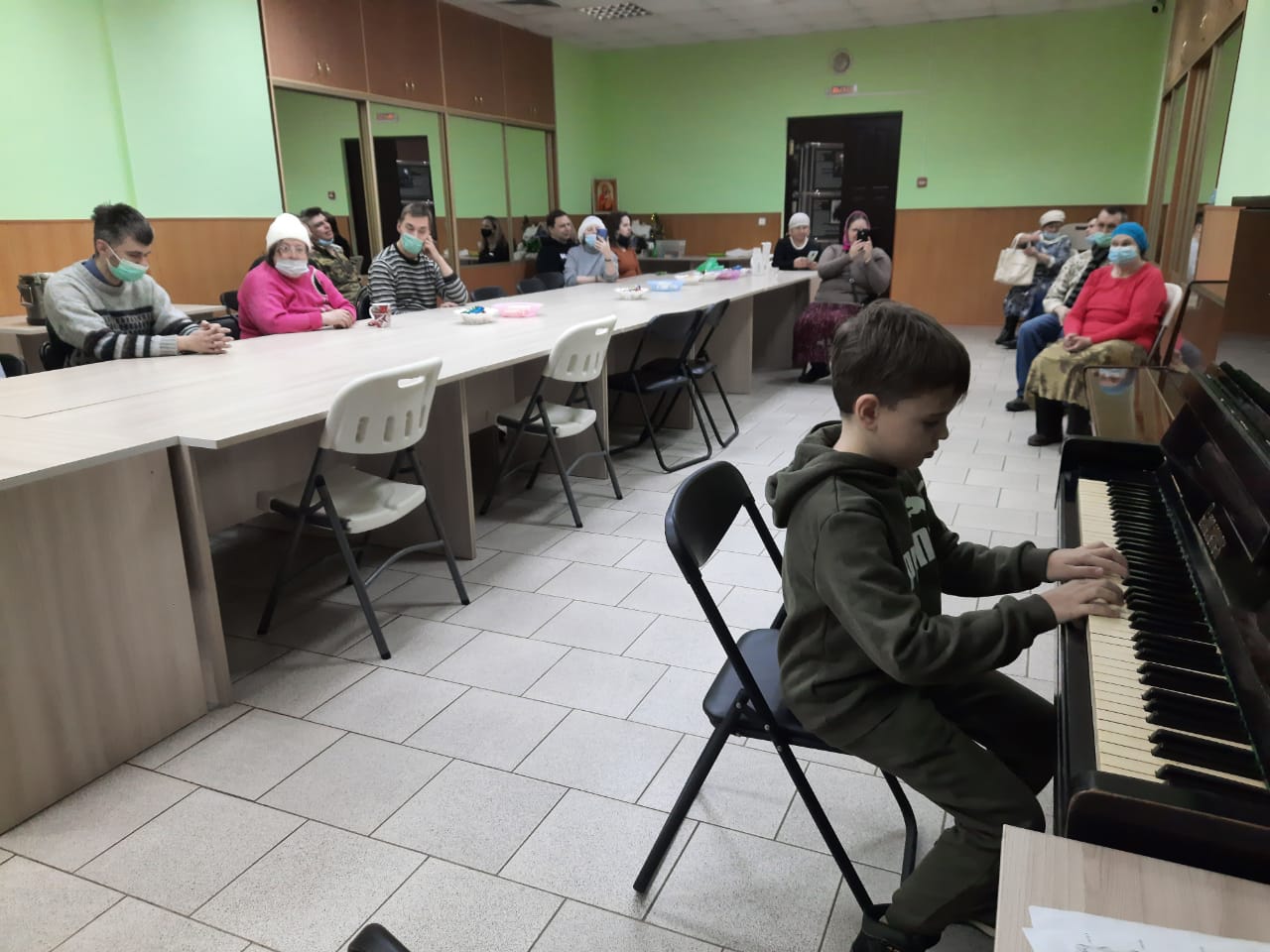 По благословению настоятеля прихода храма Святых Новомучеников и Исповедников Церкви Русской протоиерея Валерия Рябоконь в конференц-зале Духовно-просветительского центра при Приходе храма состоялось мероприятие «Весеннее настроение». Учащиеся хорового, фортепианного, струнного и эстрадного отделений МБУДО «Детская музыкальная школа №1 им. М.И.Глинки» выступили с концертом перед воспитанниками воскресной школы семейного типа для людей с инвалидностью в честь преподобномученицы Великой княгини Елизаветы. Ведущими и организаторами мероприятия стали преподаватели музыкальной школы И.В.Орлова и Н.А. Маслякова.