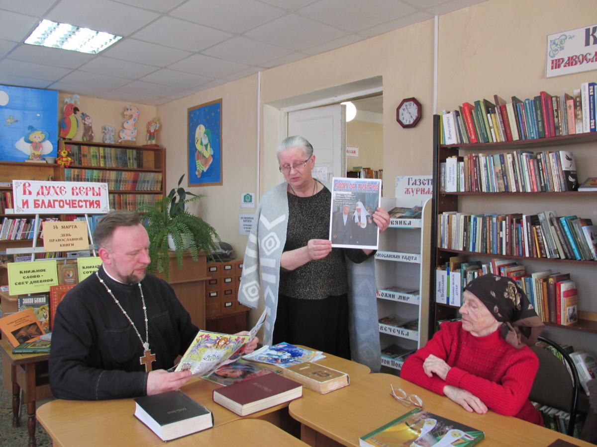 В рамках празднования Дня православной книги в библиотеке города Демидова прошло мероприятие духовной тематики. Цель данного мероприятия духовно-нравственное просвещение и приобщение читателей к православным традициям. Мероприятие открыл благочинный Демидовского округа протоиерей Александр Миронов.