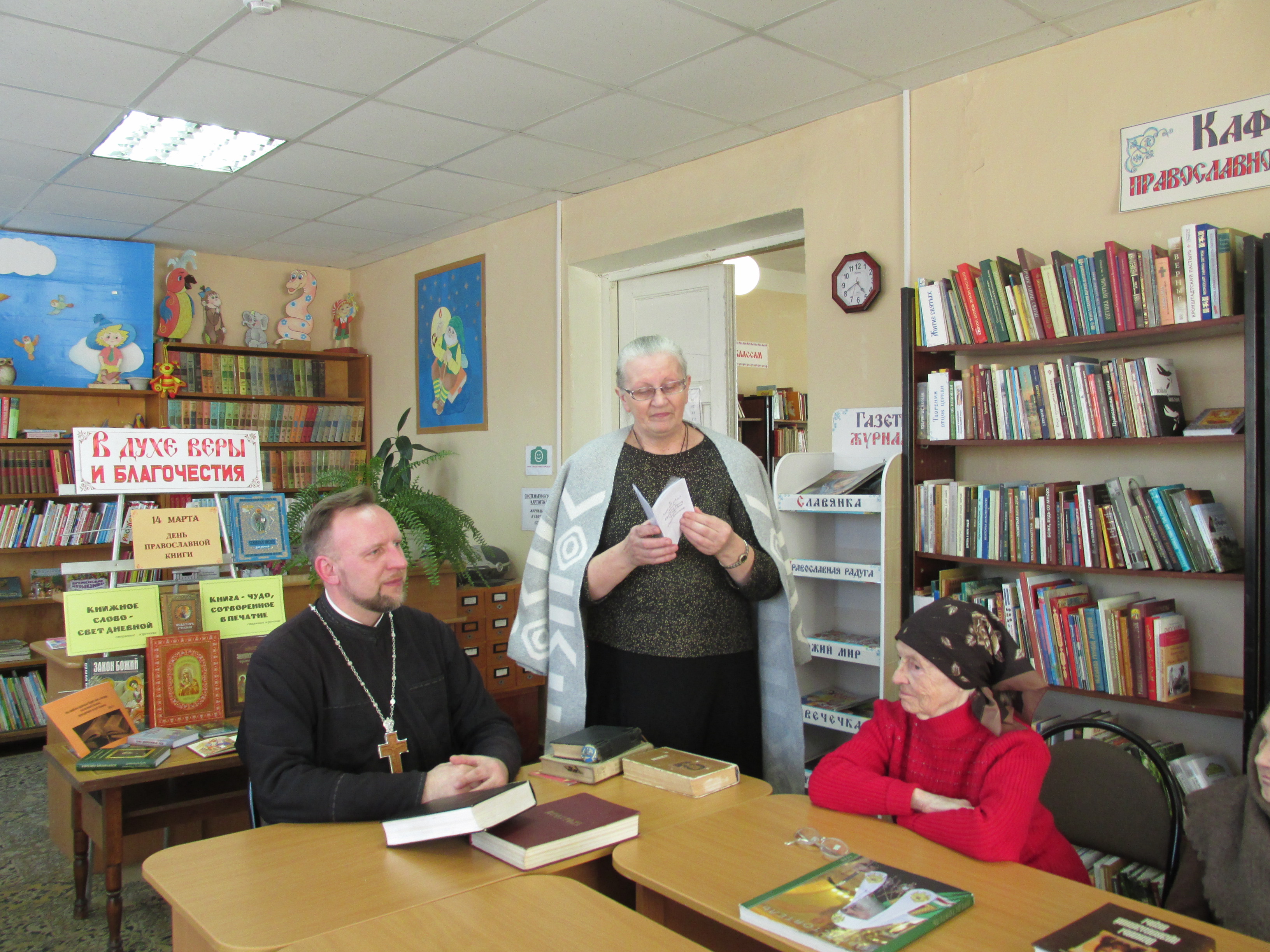 Собравшиеся вспомнили историю создания русской книги, подискутировали на тему: « что такое православная книга и какие они бывают». А также высказали своё мнение о чтении и значении православной литературы. Заведущая Кафедрой православной литературы В.В. Ткучук познакомила участников мероприятия с новинками православной литературы. Каждый пришедший в этот день в библиотеку смог открыть для себя что-то новое, нашел ответы на волнующие вопросы, которые таятся в книгах и содержат в себе «сердцу полезное слово».