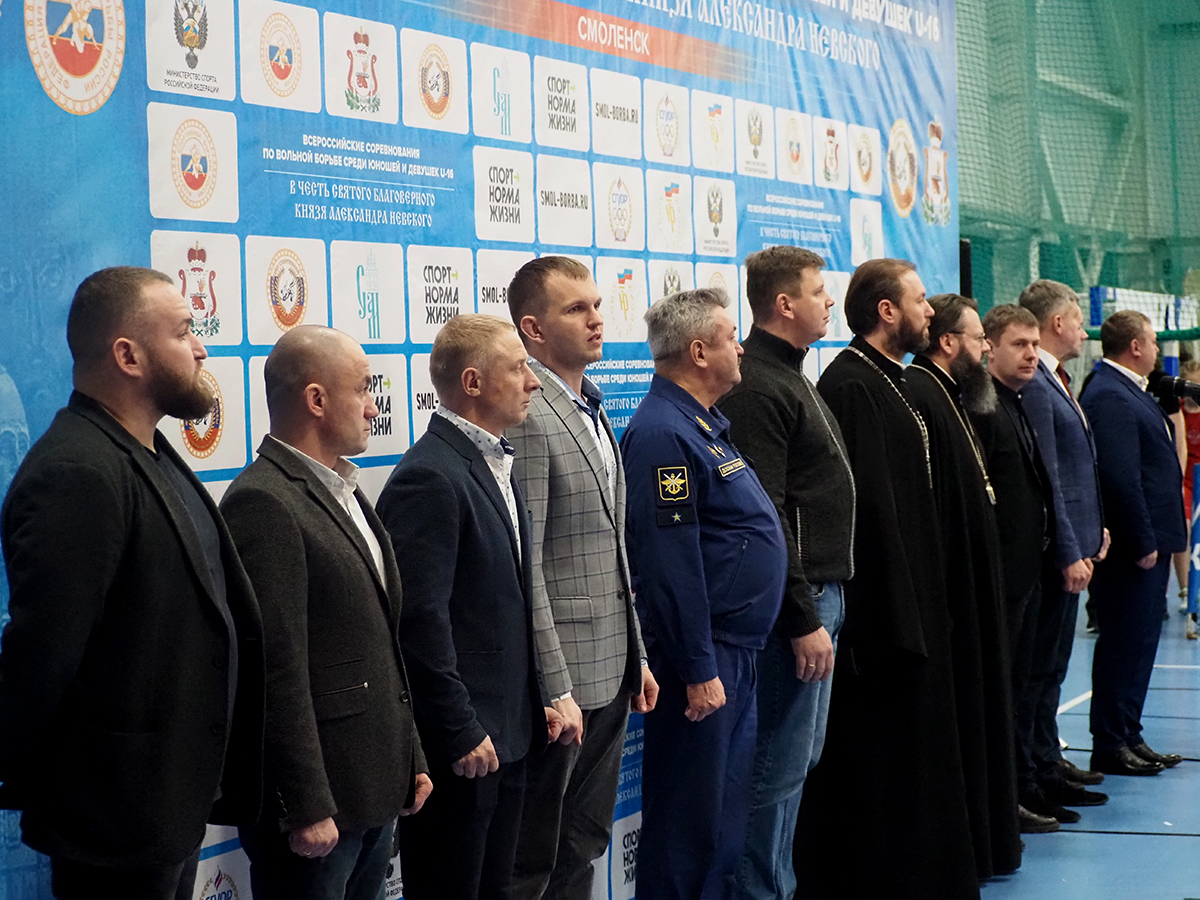 В торжественной церемонии открытия турнира приняли участие Глава Смоленской митрополии, митрополит Смоленский и Дорогобужский Исидор, руководитель Регионального исполнительного комитета Смоленского регионального отделения Всероссийской политической партии «Единая Россия», депутат Смоленской областной Думы Артем Сергеевич Малащенков, заместитель начальника Главного управления спорта Смоленской области Виктор Владимирович Кирюшкин, начальник Управления физической культуры и спорта Администрации г. Смоленска Евгений Владимирович Дударев, руководитель Отдела Смоленской епархии по физической культуре и спорту, благочинный Борисоглебского церковного округа протоиерей Андрей Мельничук, тренер сборной России по вольной борьбе Владислав Геннадьевич Хохлов, старший тренер сборной России по вольной борьбе Олег Алексеевич Марков, председатель ДОСААФ России по Смоленской области Виктор Егорович Трясунов, генеральный директор «Гласс Маркет», член попечительского совета Федерации спортивной борьбы Смоленской области Николай Васильевич Савчин, президент Федерации спортивной борьбы Смоленской области Олег Леонидович Марьенков, вице-президент Федерации спортивной борьбы Смоленской области Алексей Викторович Бойко, вице-президент Федерации спортивной борьбы Смоленской области, директор Смоленского государственного училища олимпийского резерва Юрий Александрович Глебов.