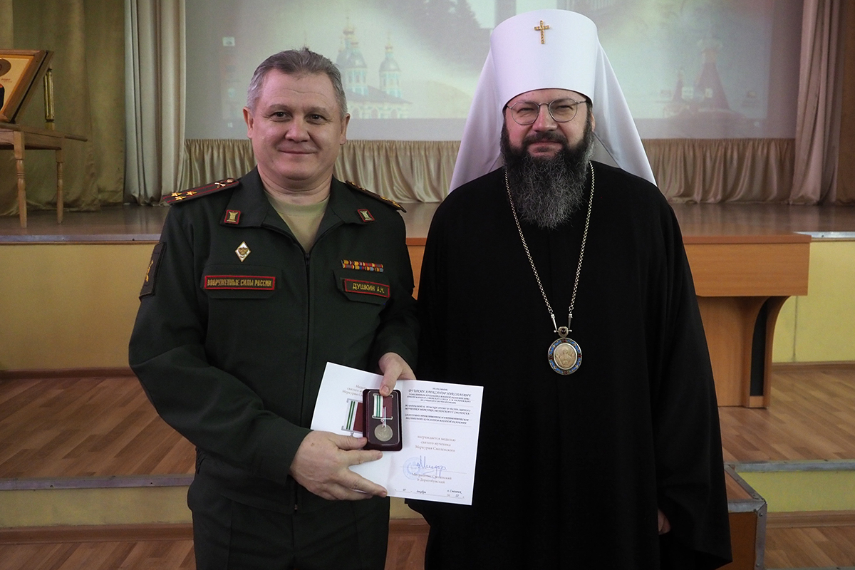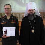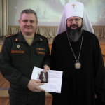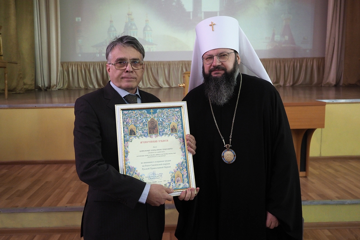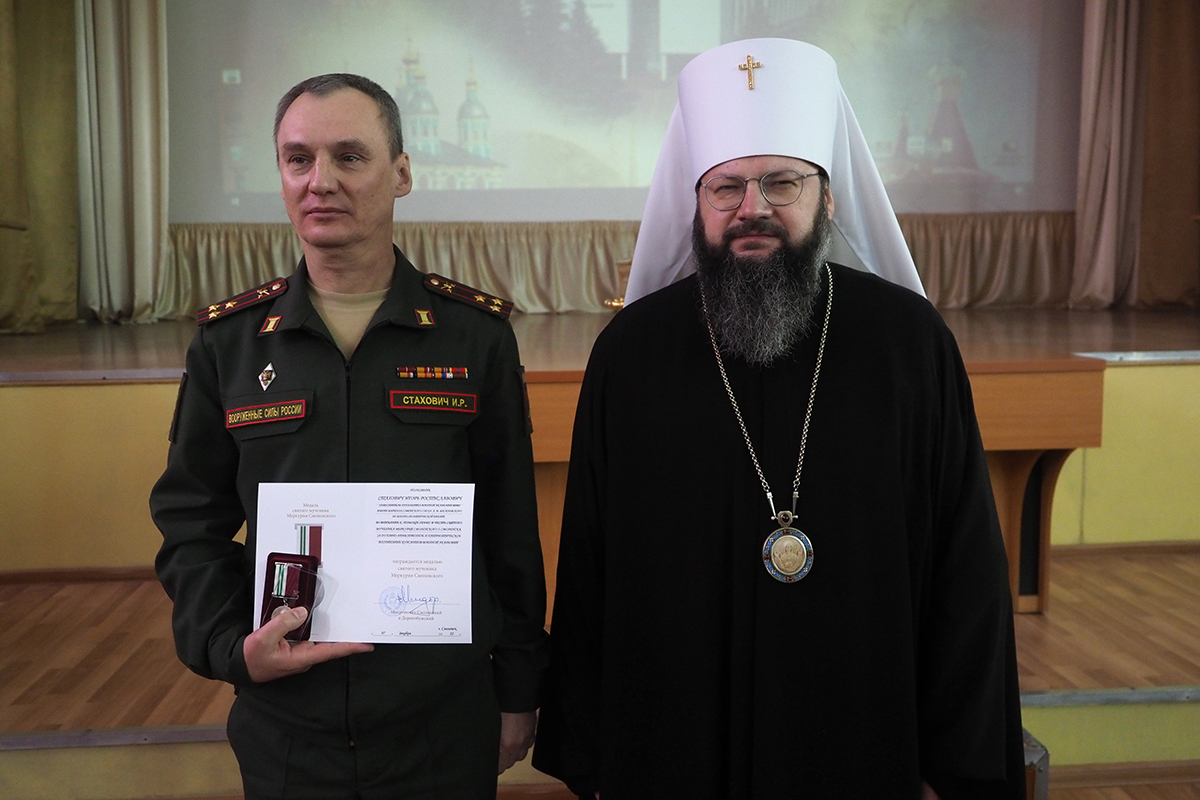 Во внимание к усердным трудам Смоленской епархии Русской Православной Церкви, в честь 20-летия прихода в честь святого мученика Меркурия Смоленского митрополит Исидор вручил епархиальные награды руководству и сотрудникам Военной академии.
