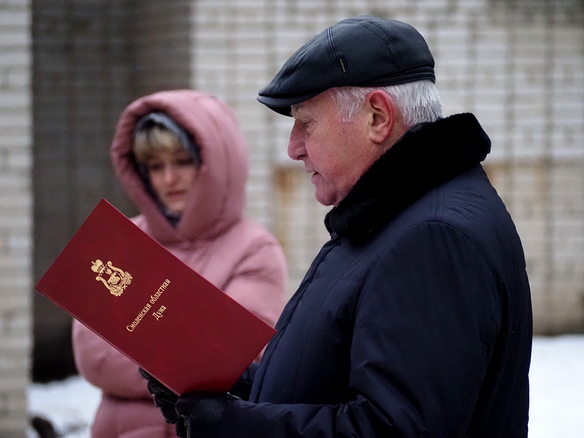 Поздравление Председателя Смоленской областной Думы Игоря Васильевича Ляхова зачитал Николай Николаевич Мартынов.