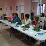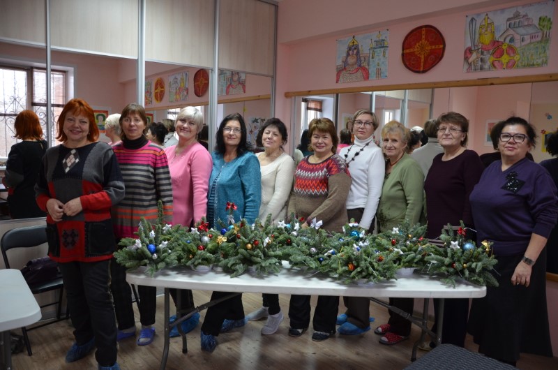 12 членов клуба старательно удаляли иголки с веток, раскладывали украшения по цветам, внимательно слушали ведущую. Через 1,5 часа у каждого участника мастер-класса получилась своя уникальная елочка. Несколько созданных композиций отправятся на акцию «От сердца к сердцу».