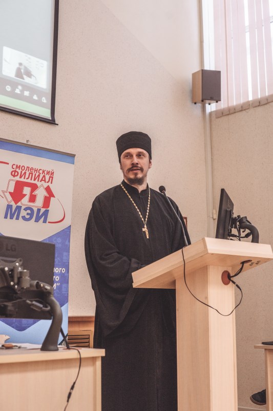 В завершении работы итогового круглого стола «Россия – Беларусь: Война. Память. Семья» выступил иерей Дмитрий Литвищенко, настоятель храма в честь святой мученицы Татианы. Священник отметил важность и необходимость подобного рода проектов, погружающих студентов в изучение истории своей страны, дающих возможность сближения студентов светских и духовных учебных заведений, создающих площадку для общения молодежи.