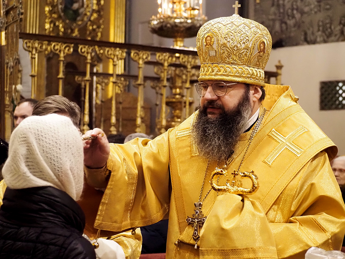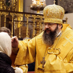 В продолжение богослужения Высокопреосвященнейший Владыка преподал собравшимся архипастырское благословение освященным елеем.