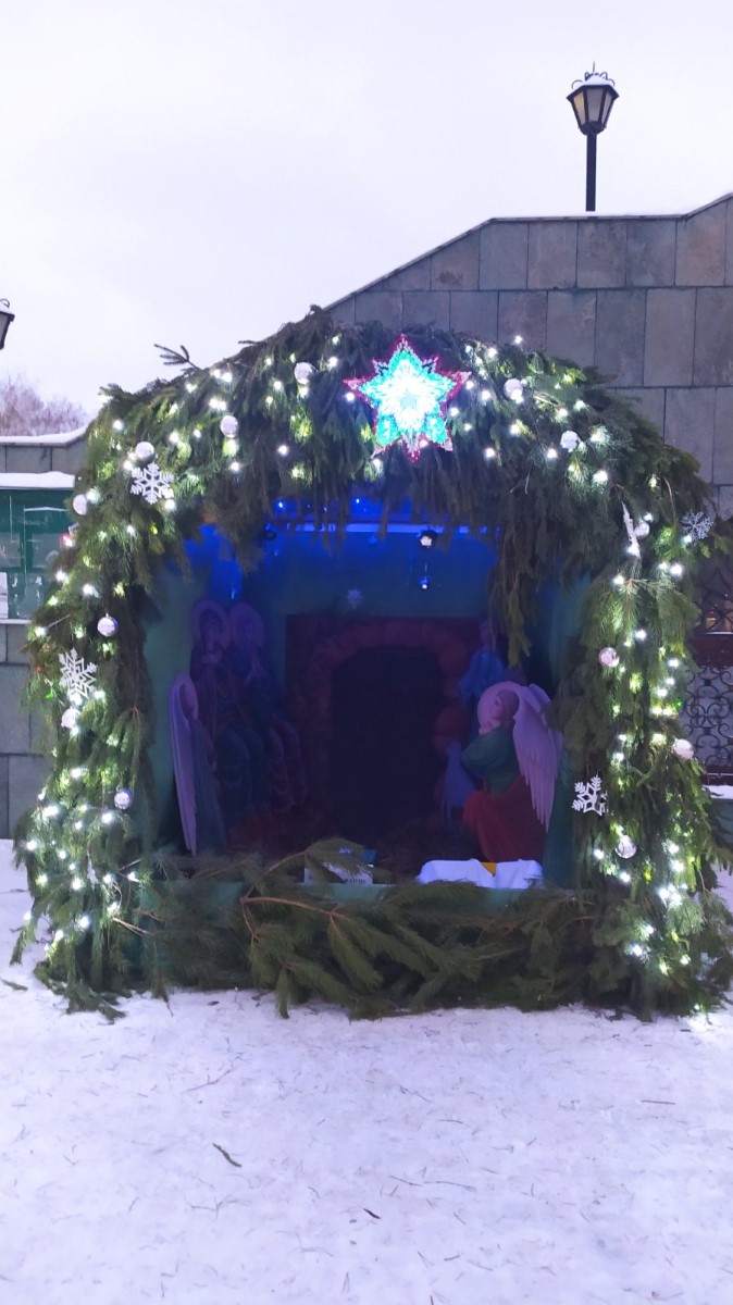 Накануне Рождественского сочельника прихожанами храма в честь святых Новомучеников и Исповедников Церкви Русской города Смоленка был установлен Рождественский вертеп.