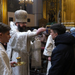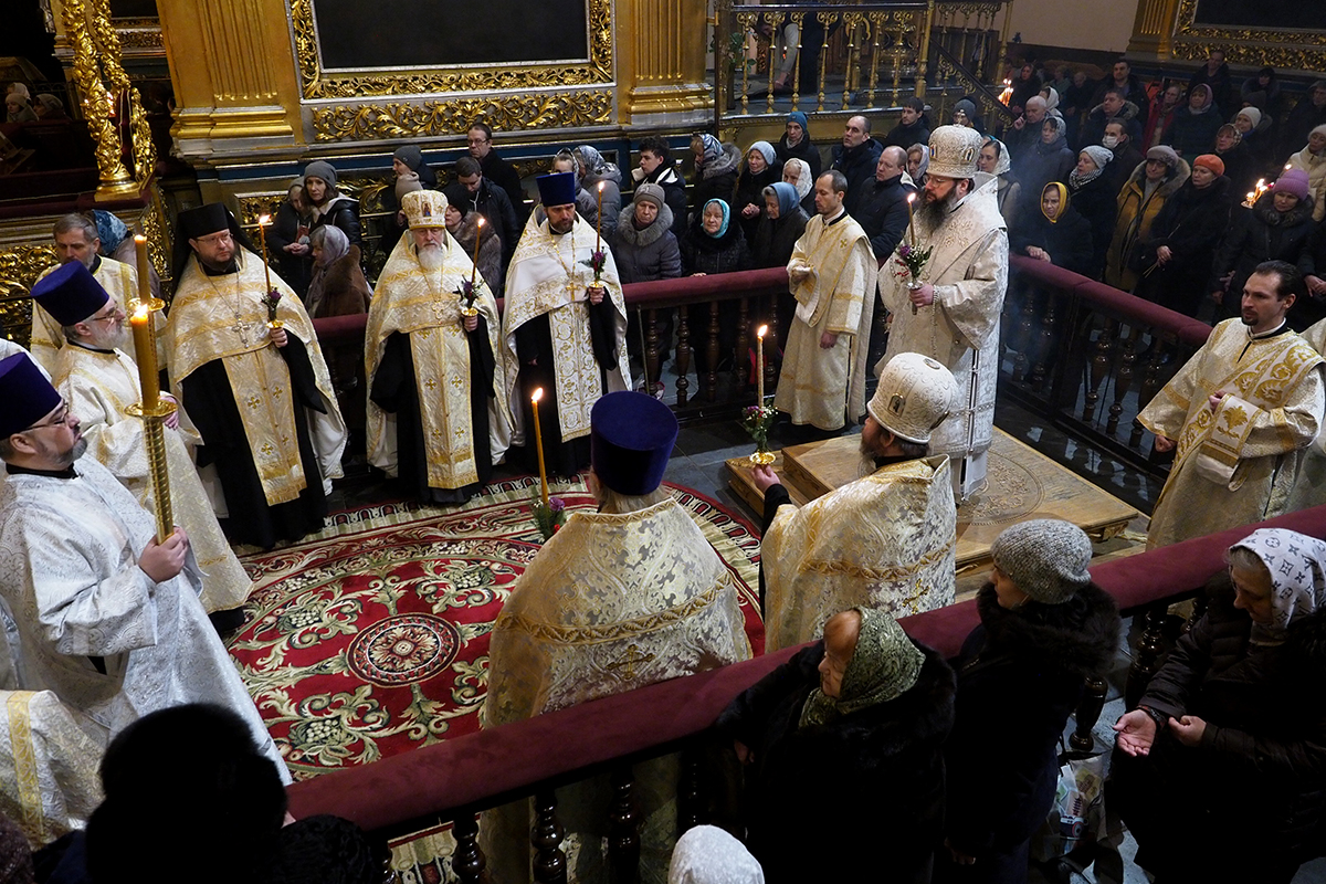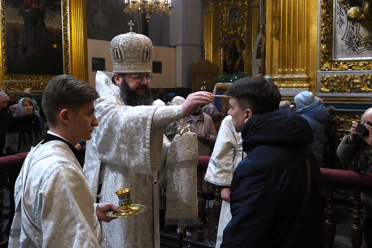 Митрополит Исидор преподал всем верующим, молящимся в этот праздничный вечер в кафедральном храме, благословение в помазании освященным елеем.